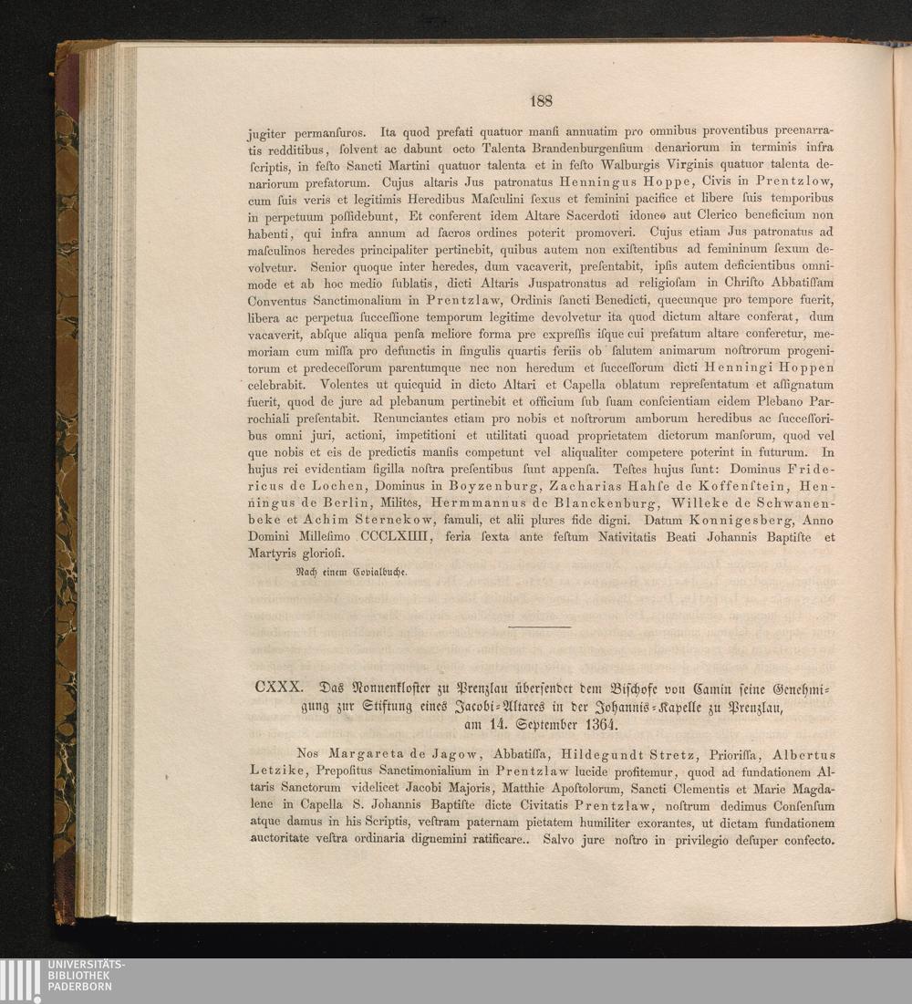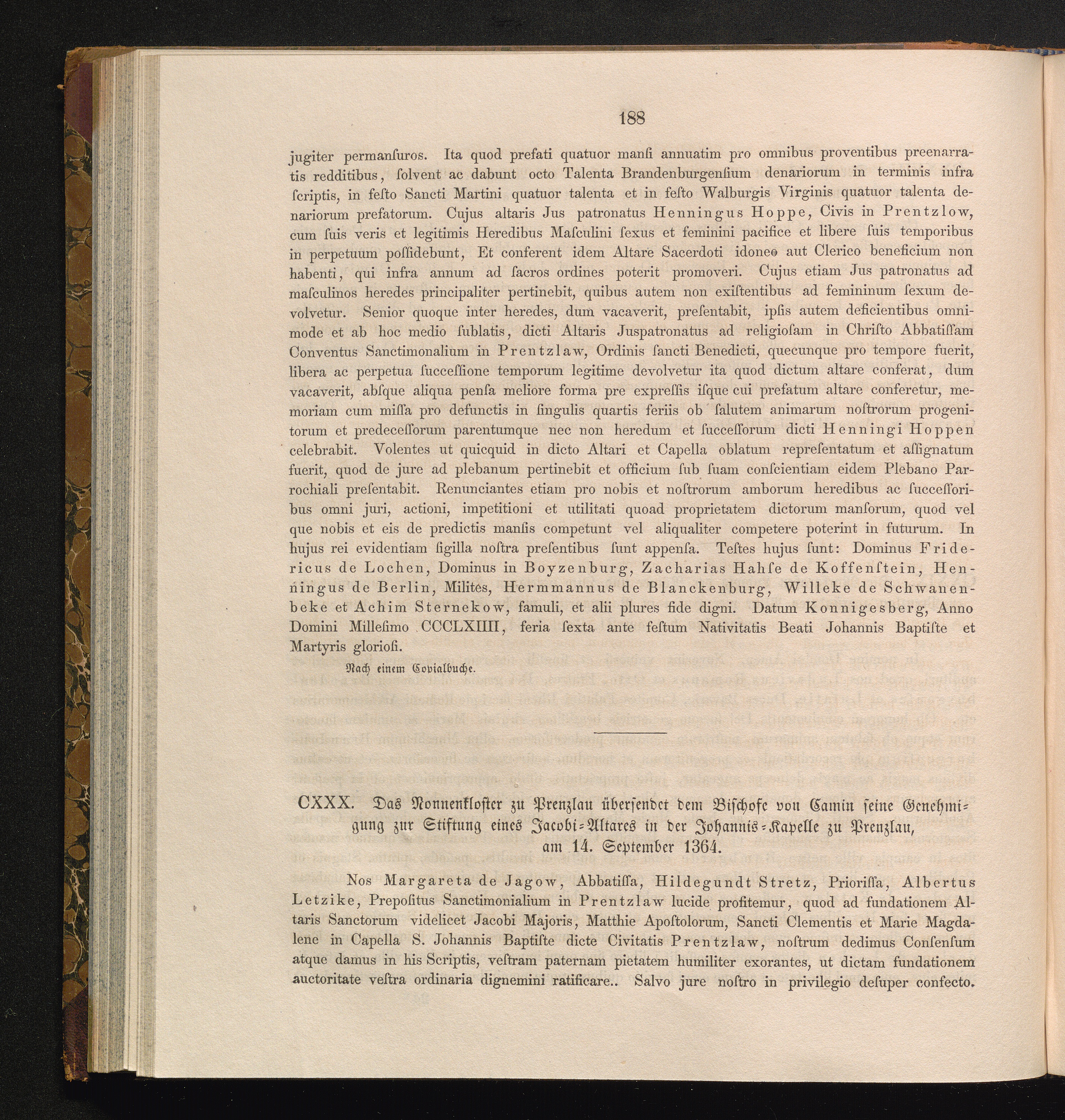 CXXX. Das Nonnenkloster zu Prenzlau übersendet dem Bischofe von Camin seine Genehmigung[...]
