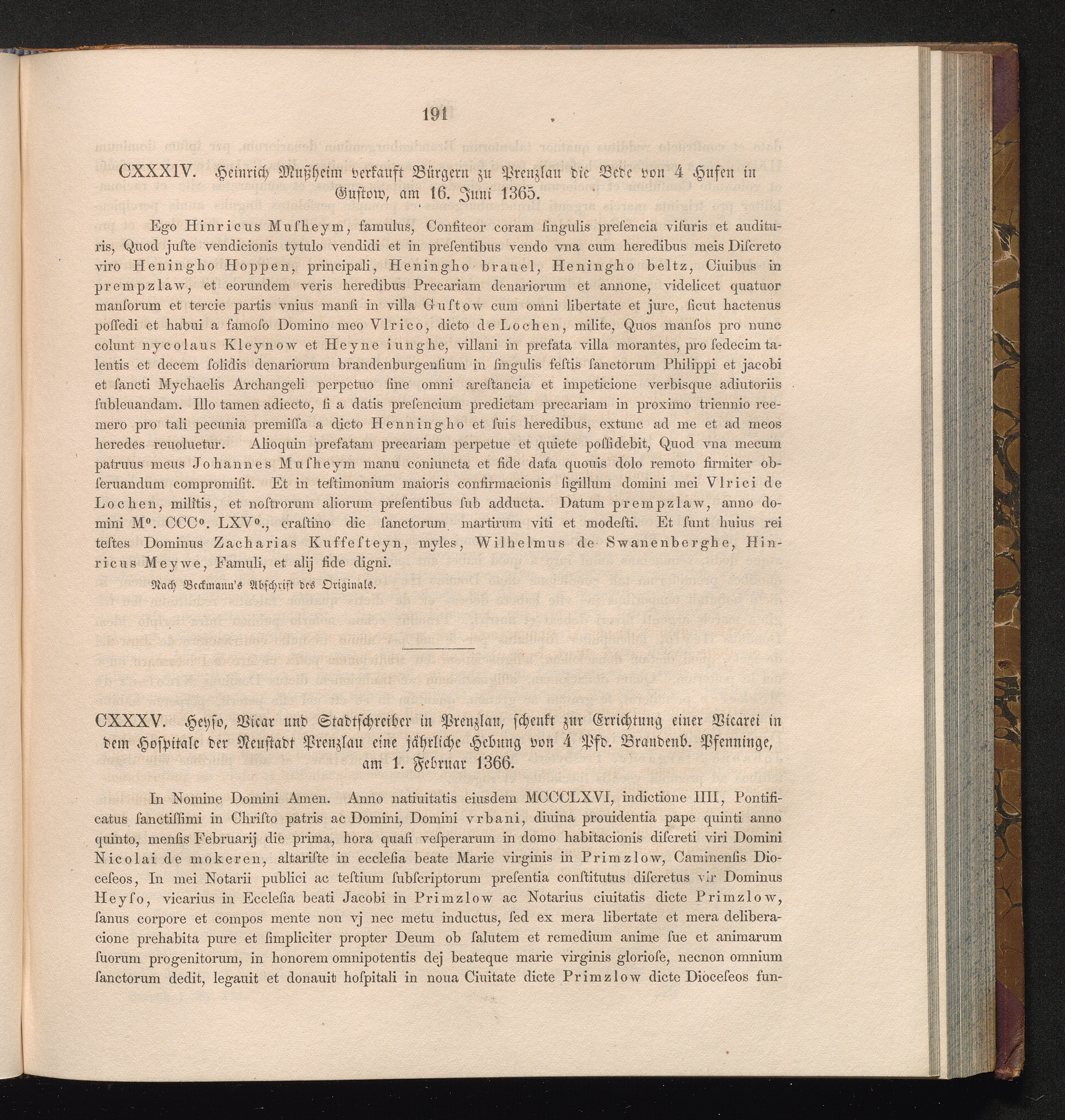 CXXXV. Heyso, Vicar und Stadtschreiber in Prenzlau, schenkt zur Errichtung einer[...]