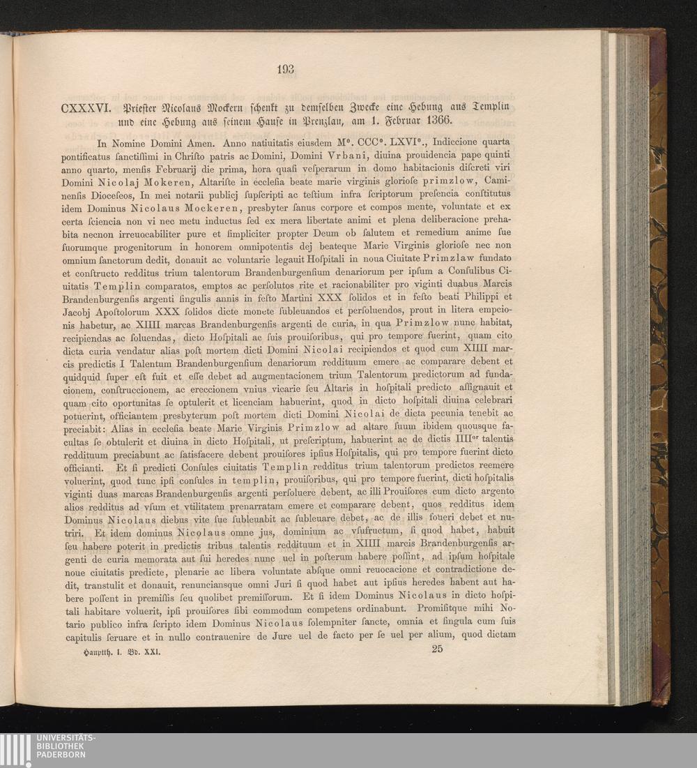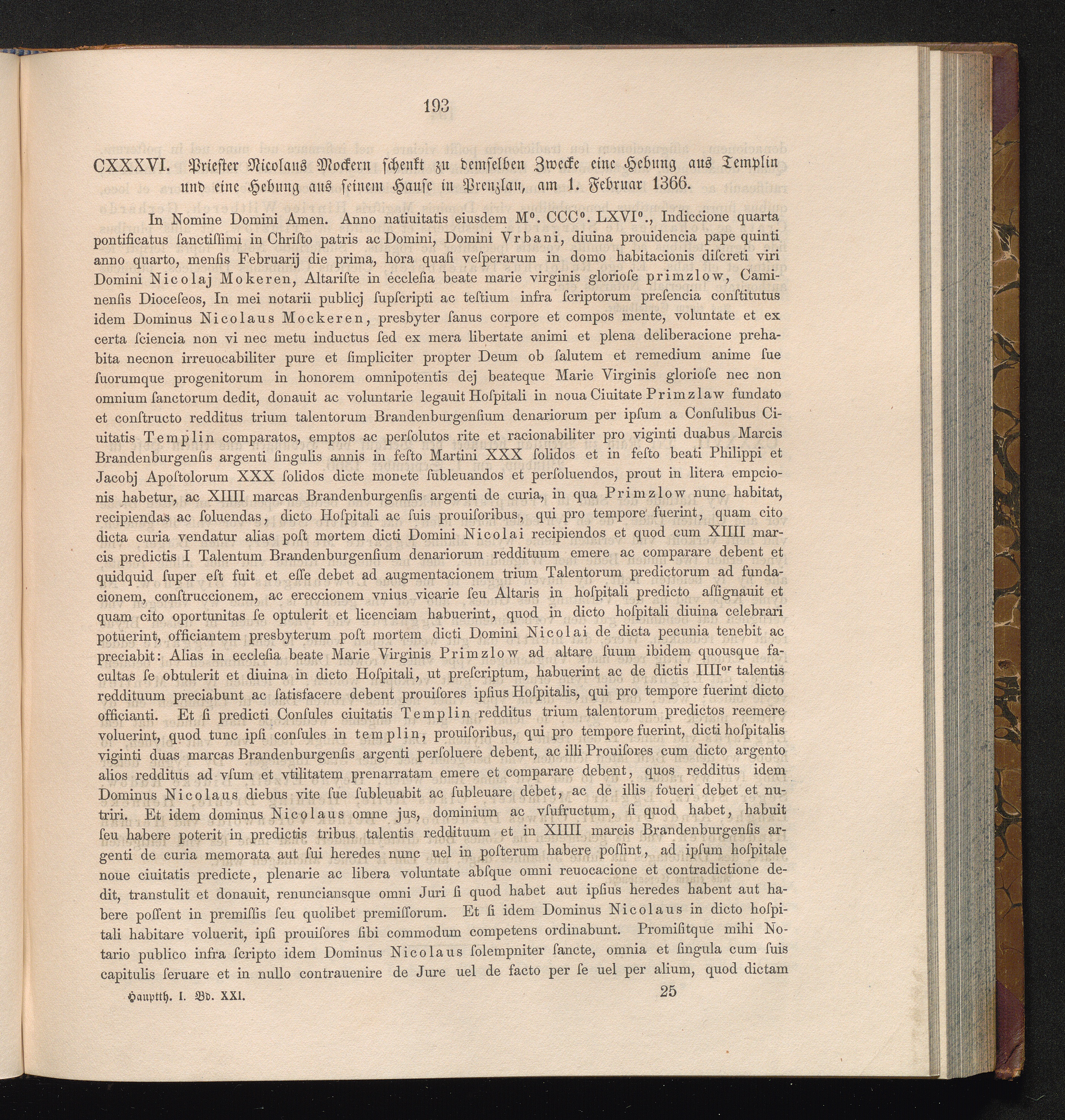 CXXXVI. Priester Nicolaus Mockern schenkt zu demselben Zwecke eine Hebung aus Templin[...]