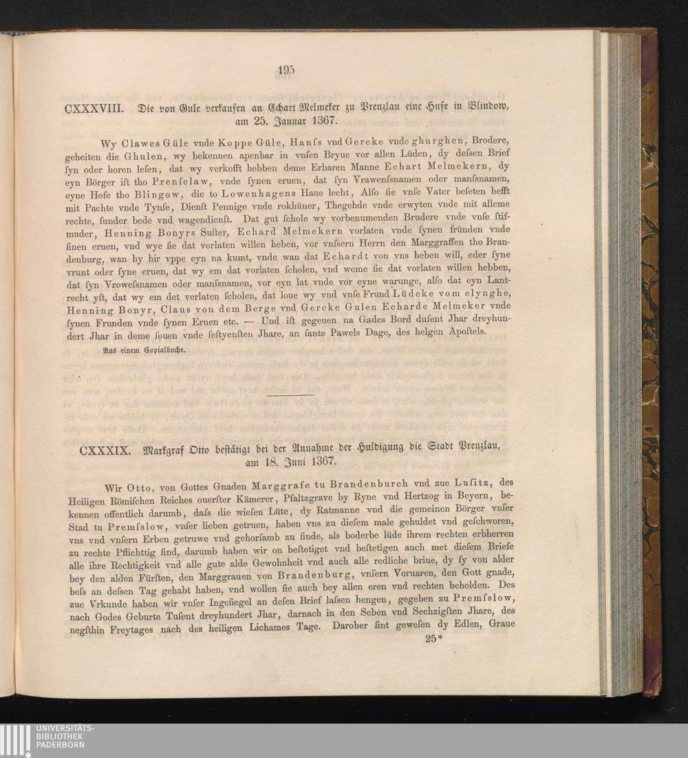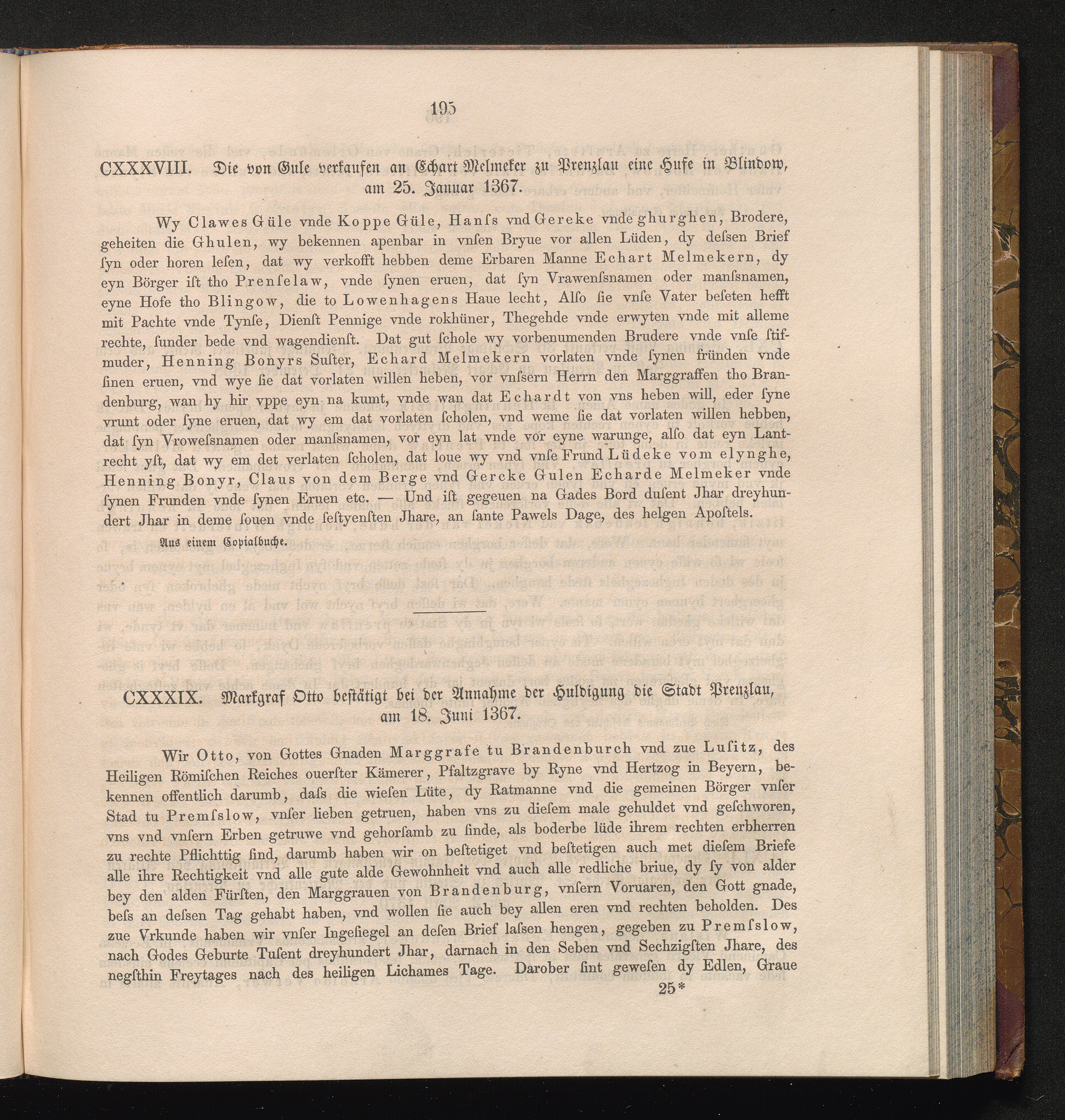 CXXXIX. Markgraf Otto bestätigt bei der Annahme der Huldigung die Stadt Prenzlau,[...]