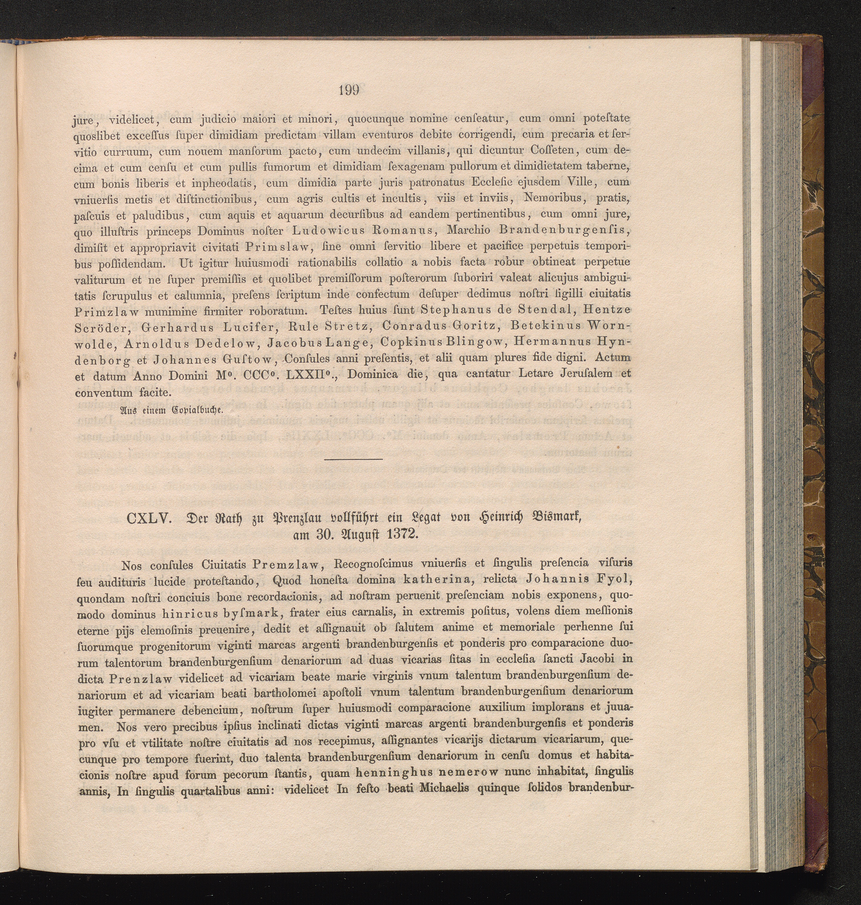 CXLV. Der Rath zu Prenzlau vollführt ein Legat von Heinirch Bismark, am 30. August[...]