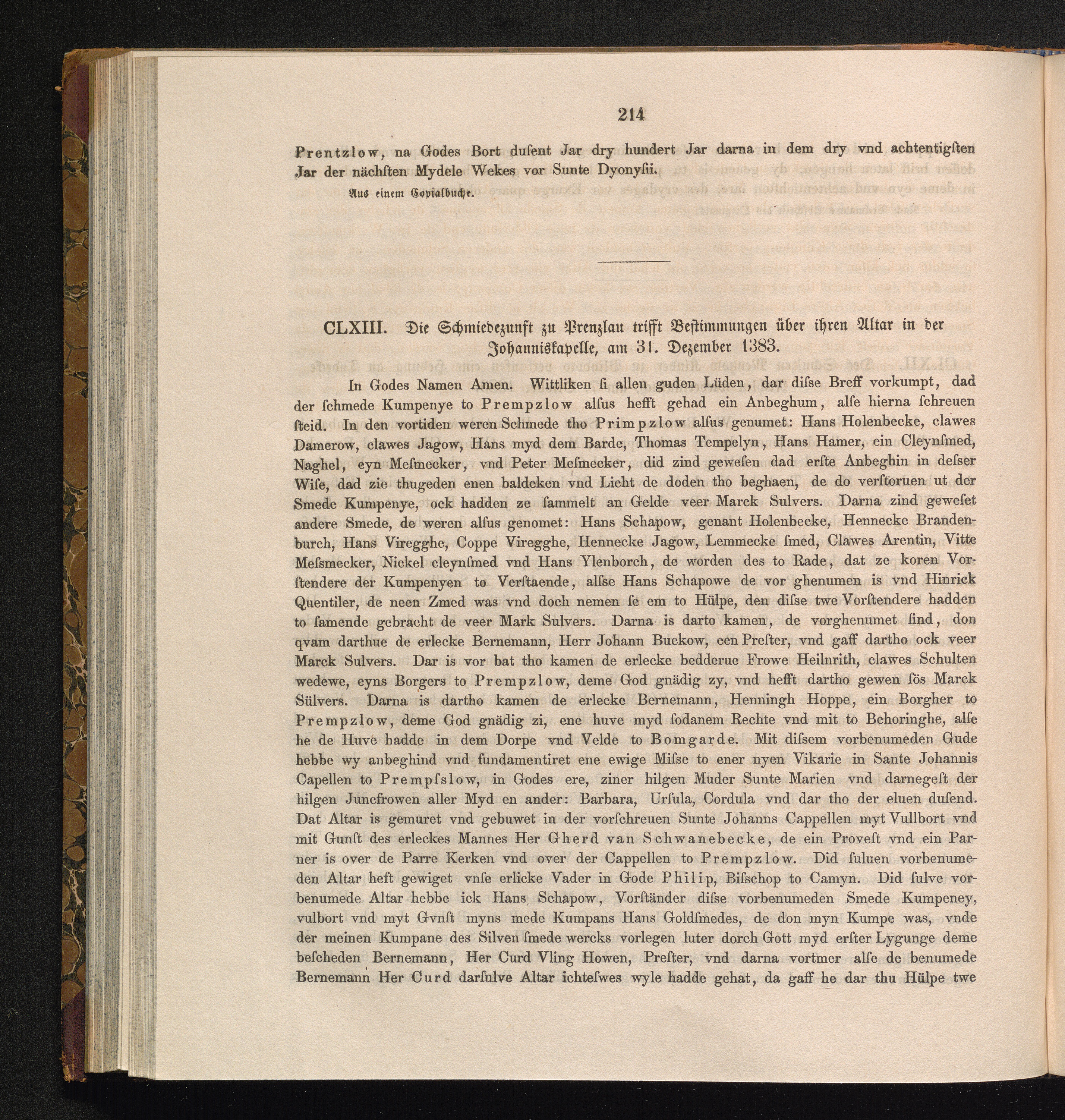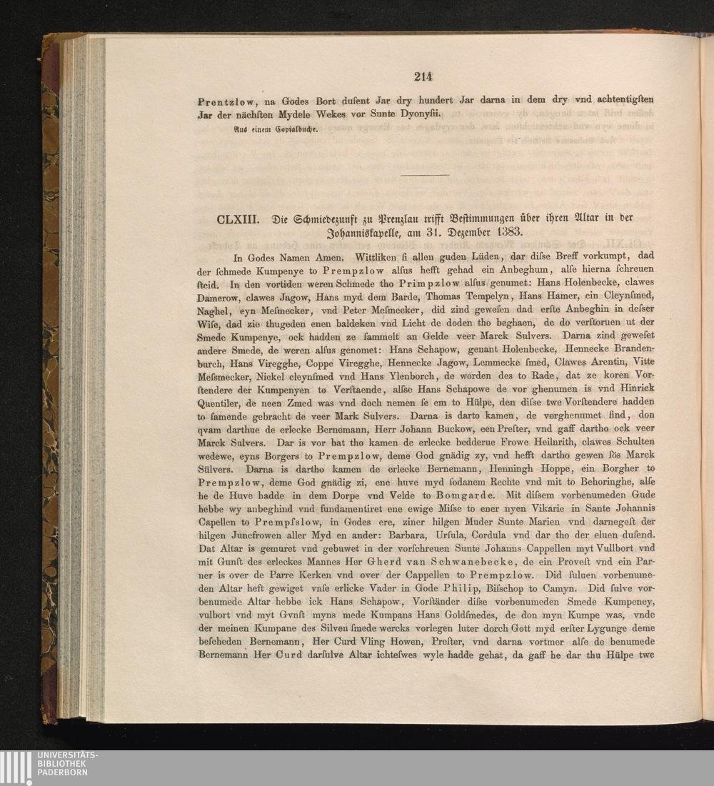 CLXIII. Die Schmiedezunft zu Prenzlau trifft Bestimmungen über ihren Altar in der[...]