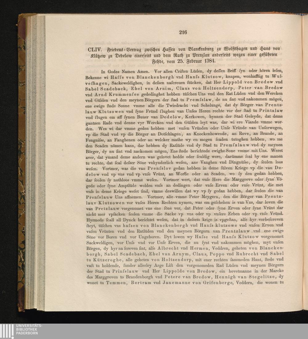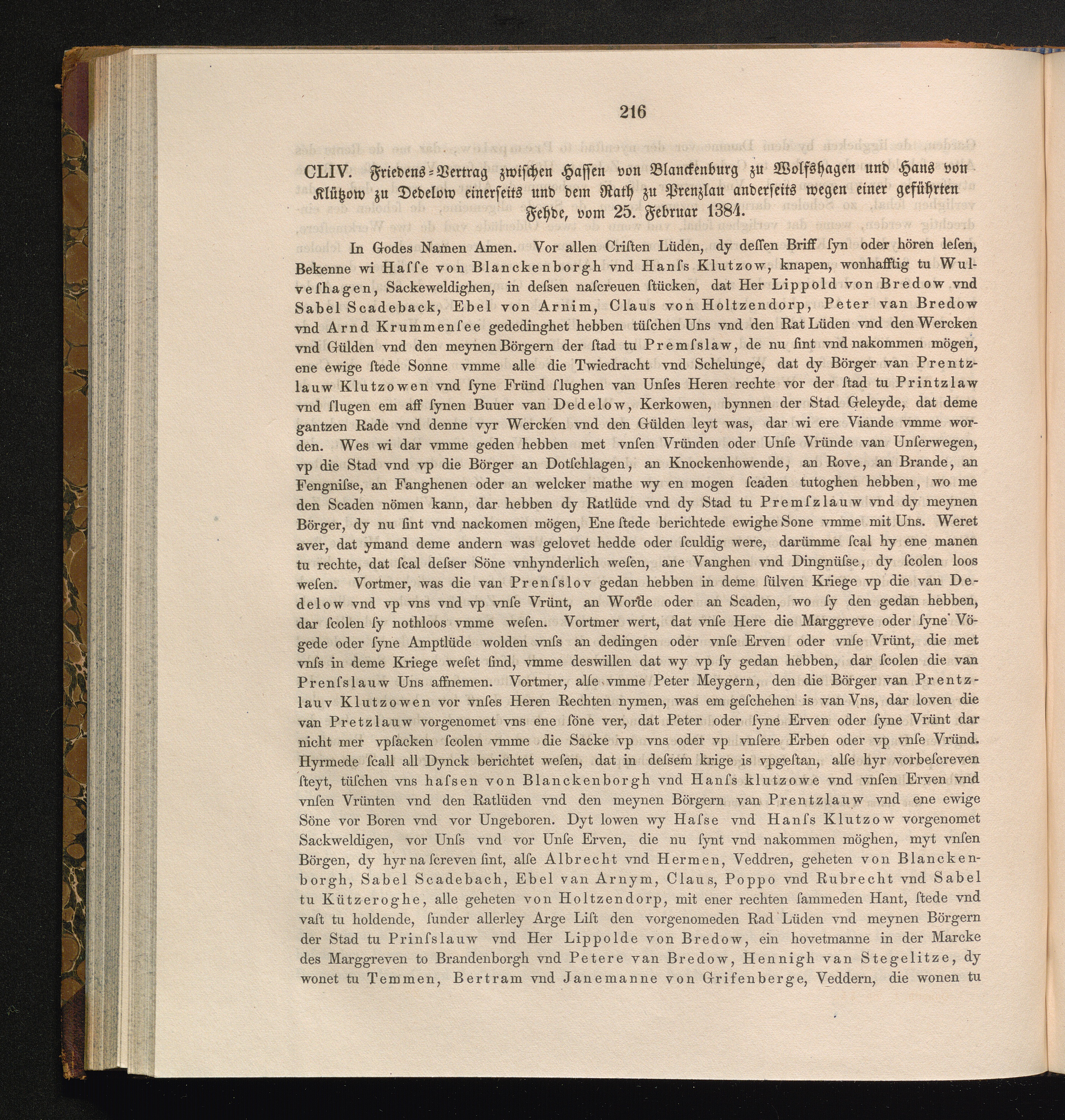 CL[X]IV. Friedens-Vertrag zwischen Hassen von Blanckenburg zu Wolfshagen und Hans[...]