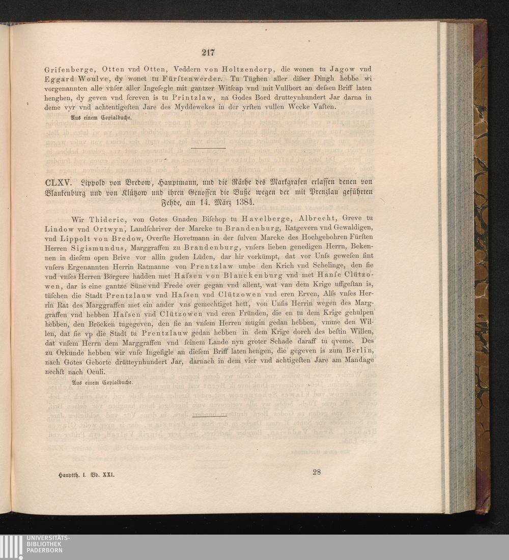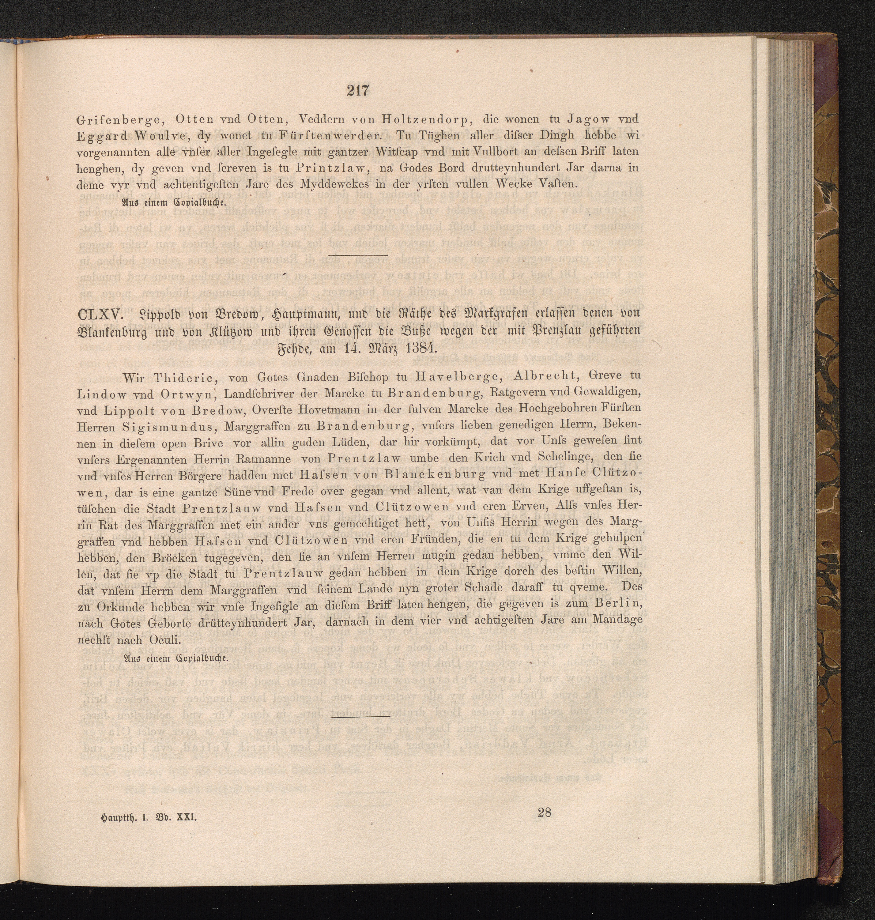 CLXV. Lippold von Bredow, Hauptmann, und die Räthe des Markgrafen erlassen denen[...]