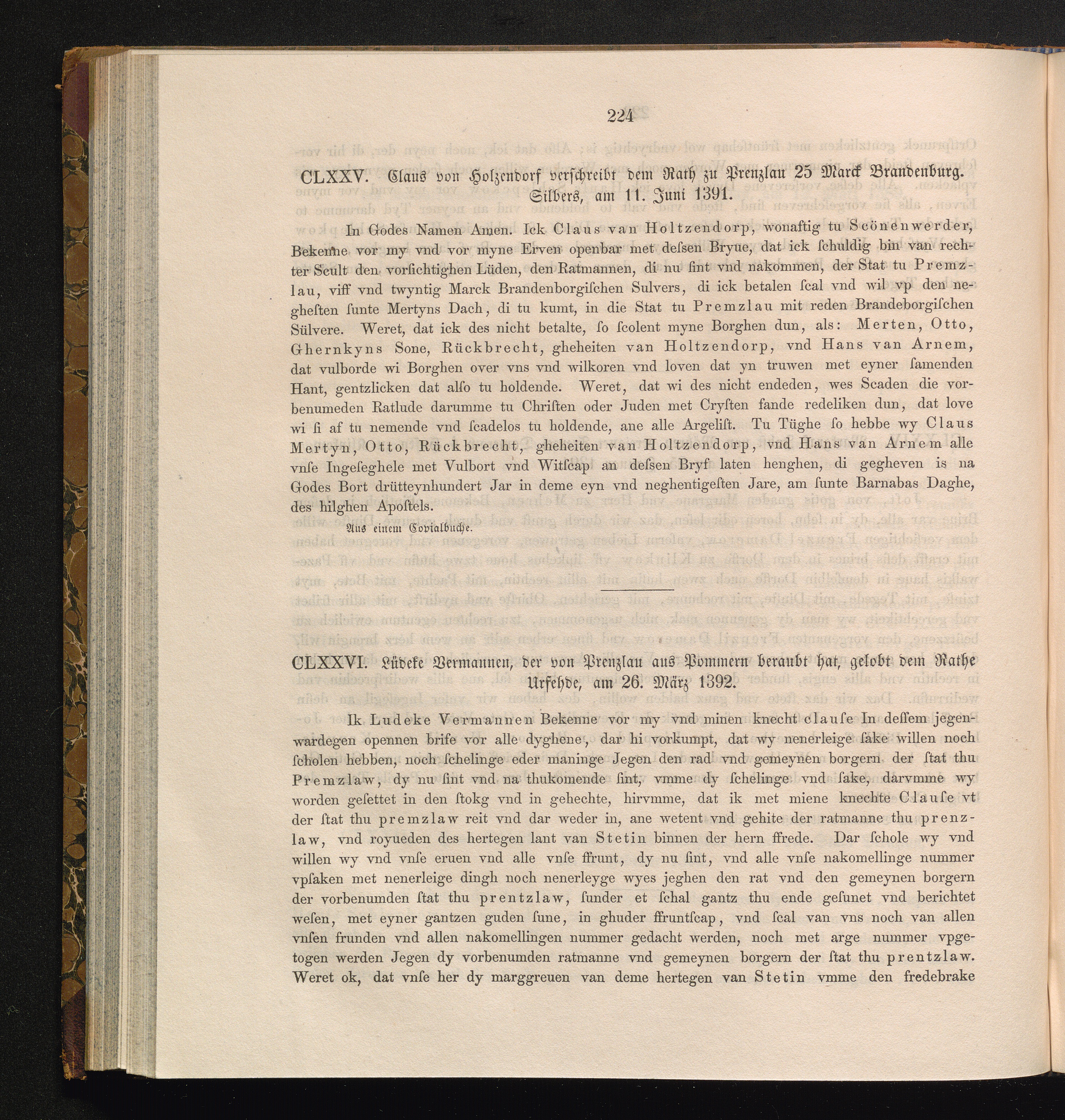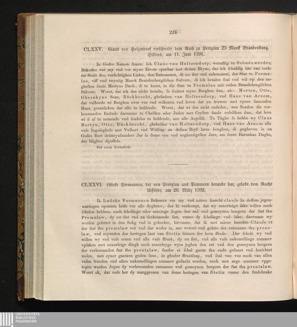 CLXXVI. Lüdeke Vermannen, der von Prenzlau aus Pommern beraubt hat, gelobt dem Rathe[...]