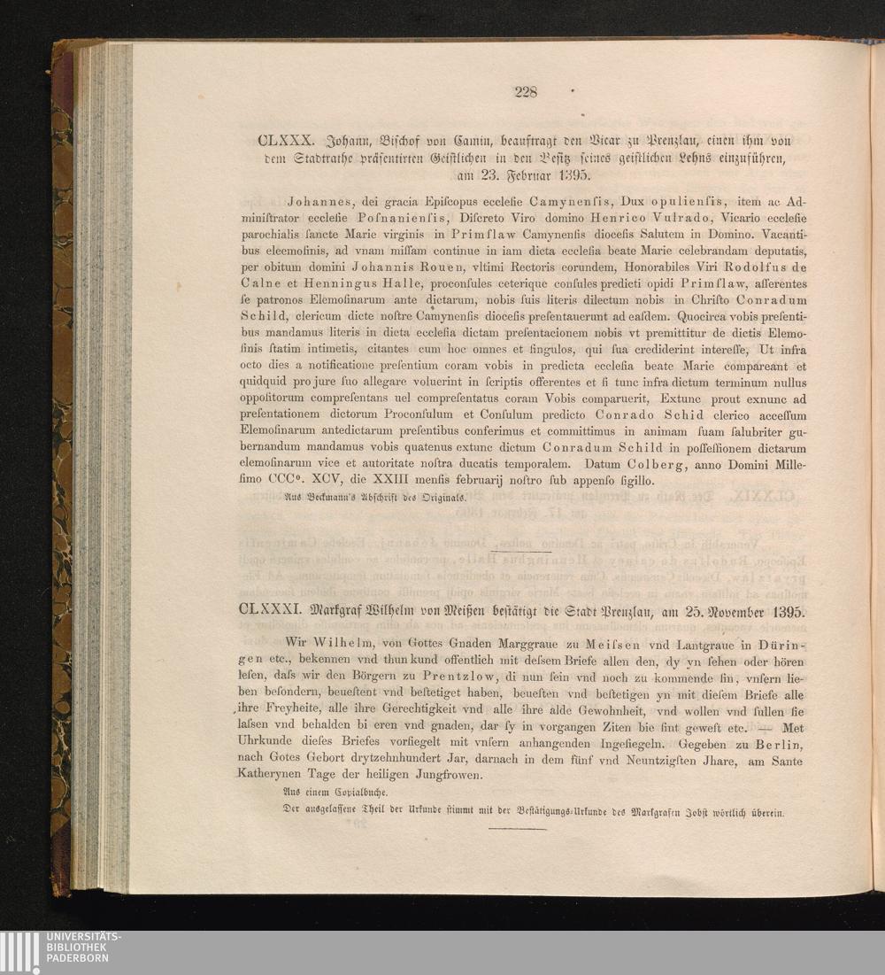 CLXXXI. Markgraf Wilhelm von Meißen bestätigt die Stadt Prenzlau, am 25. November[...]