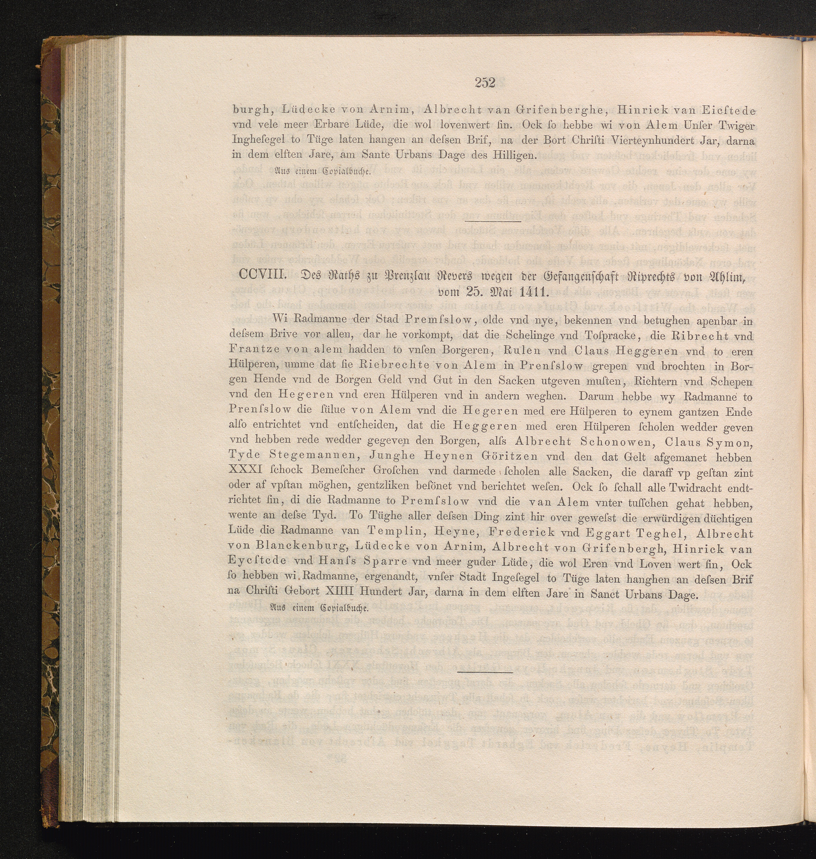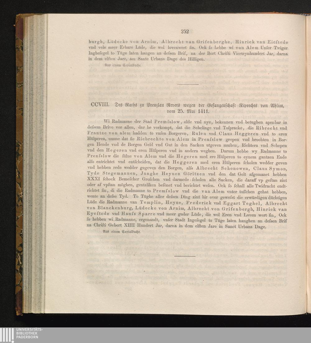 CCVIII. Des Raths zu Prenzlau Revers wegen der Gefangenschaft Riprechts von Ahlim,[...]