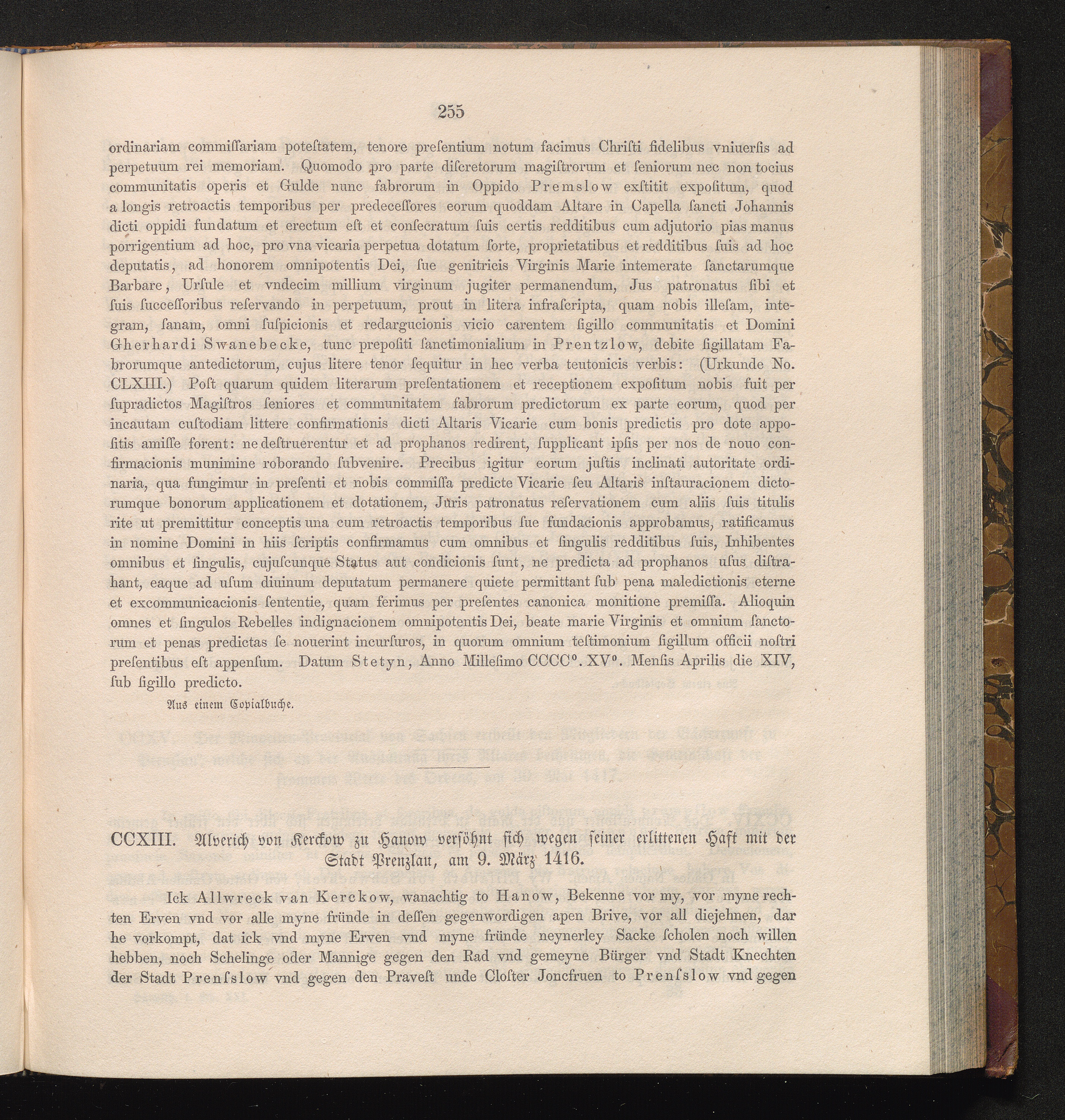 CCXIII. Alverich von Kerckow zu Hanow versöhnt sich wegen seiner erlittenen Haft[...]