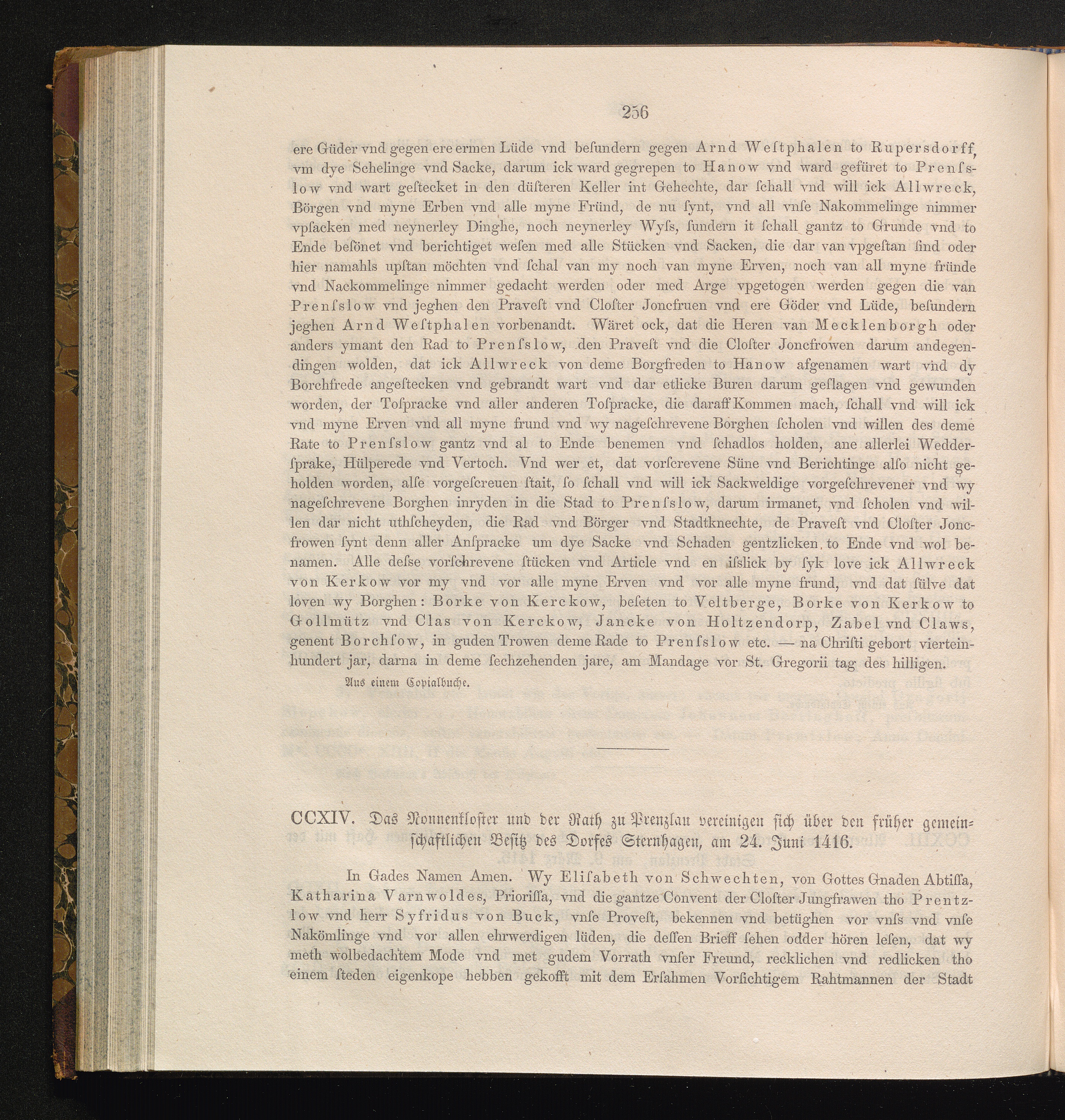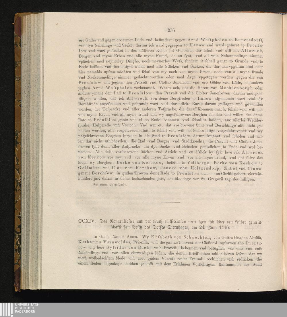 CCXIV. Das Nonnenkloster und der Rath zu Prenzlau vereinigen sich über den früher[...]