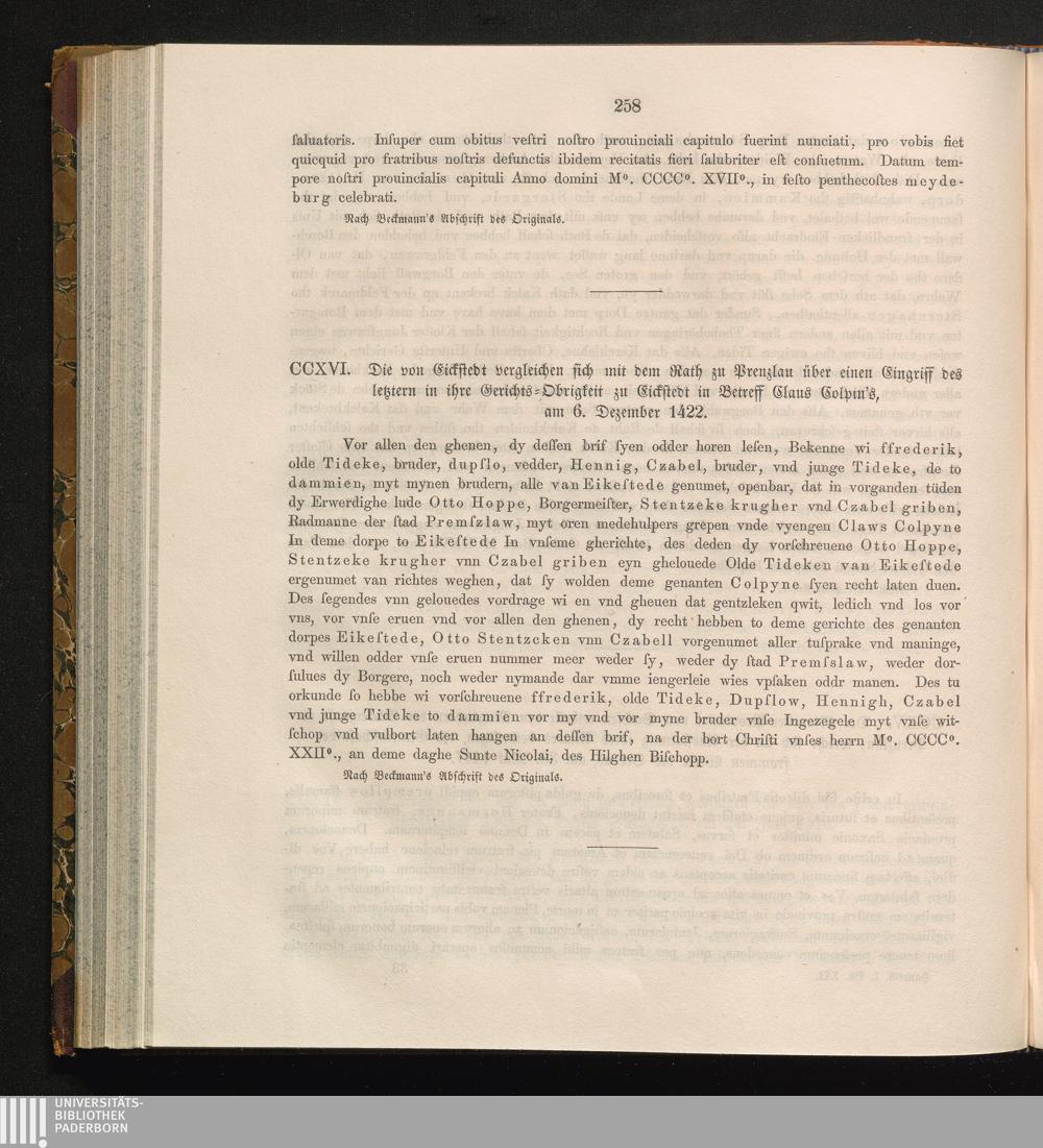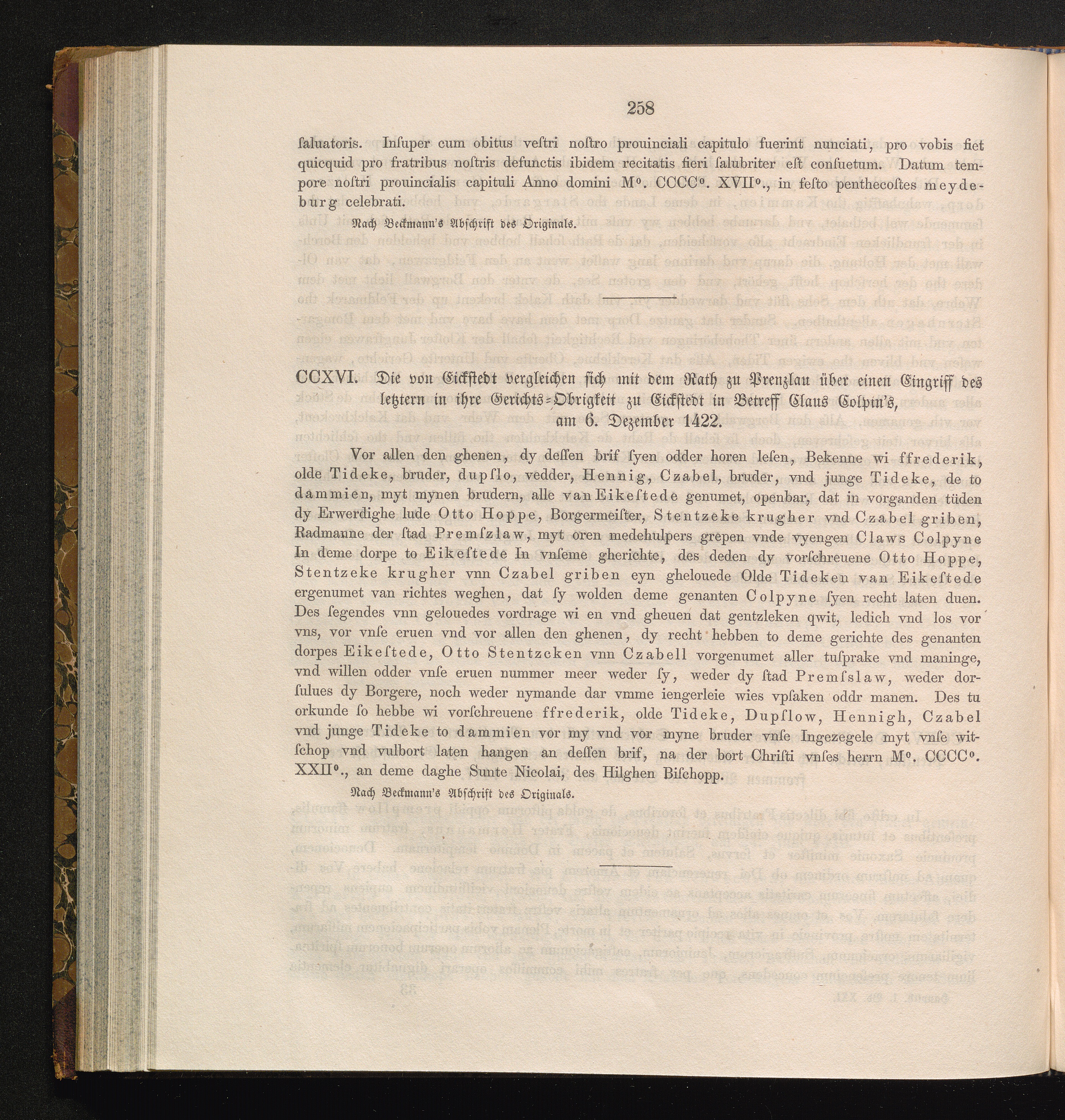CCXVI. Die von Eickstedt vergleichen sich mit dem Rath zu Prenzlau über einen Eingriff[...]