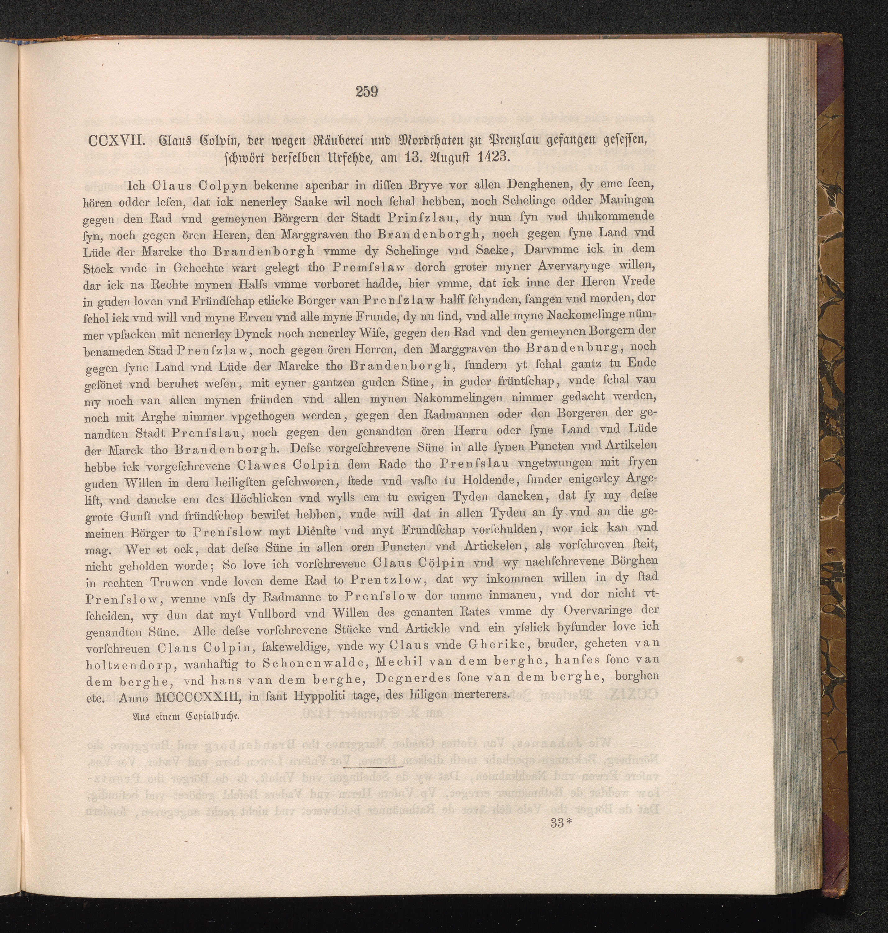 CCXVII. Claus Colpin, der wegen Räuberei und Mordthaten zu Prenzlau gefangen gesessen,[...]
