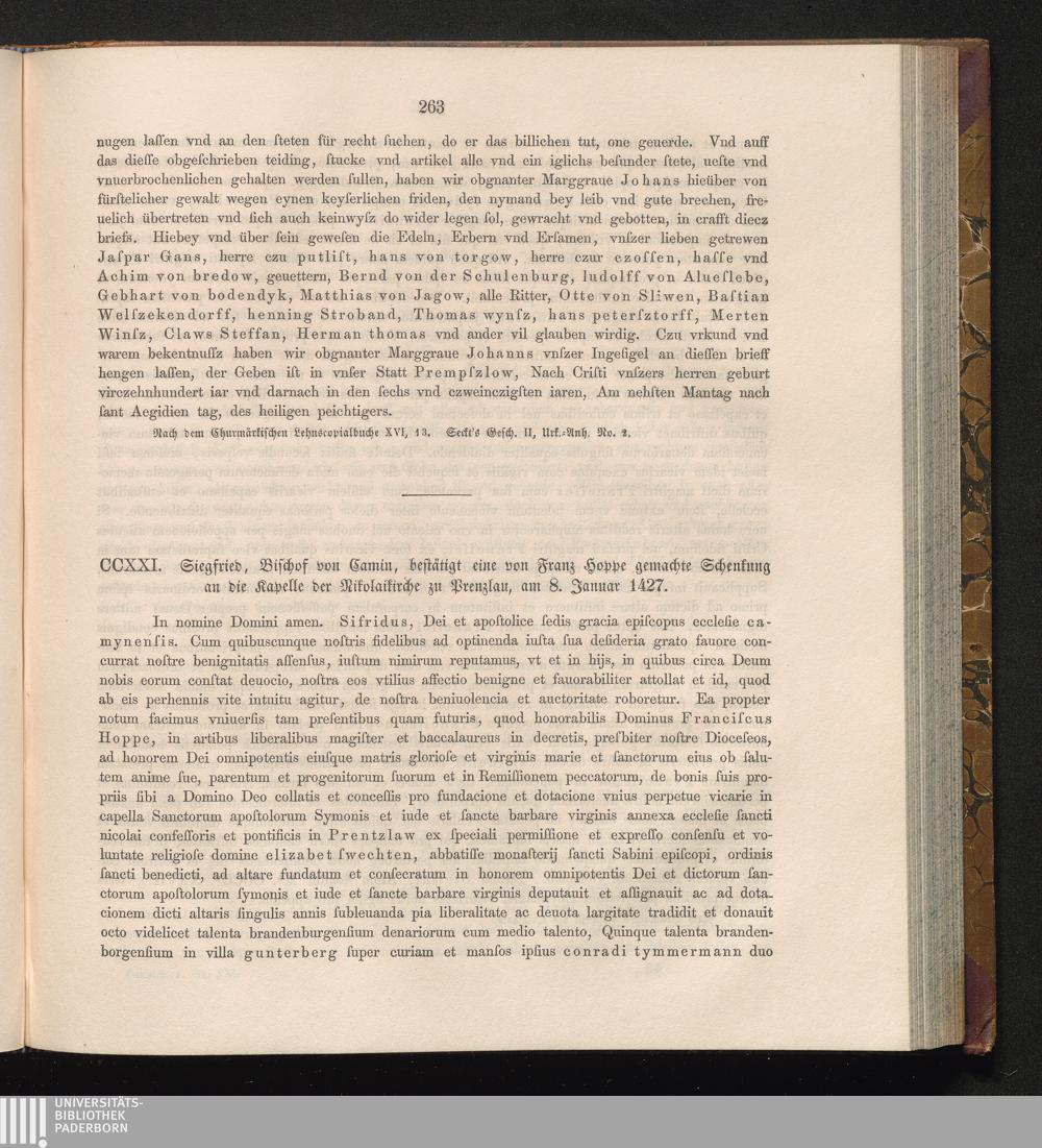CCXXI. Siegfried, Bischof von Camin, bestätigt eine von Franz Hoppe gemachte Schenkung[...]