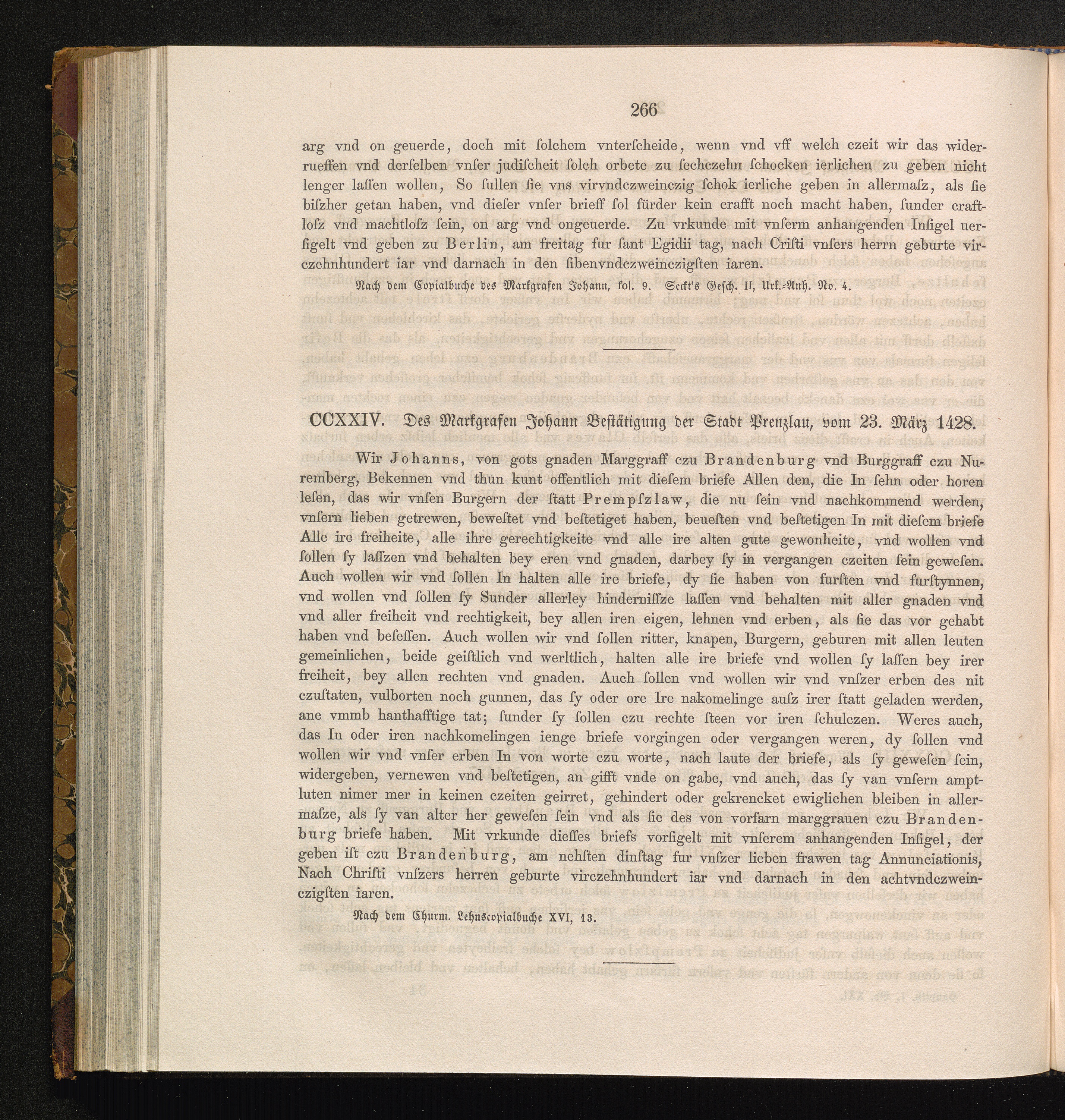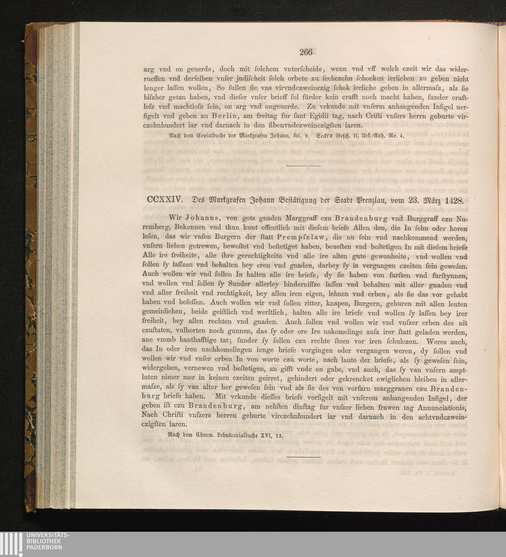 CCXXIV. Des Markgrafen Johann Bestätigung der Stadt Prenzlau, vom 23. März 1428.