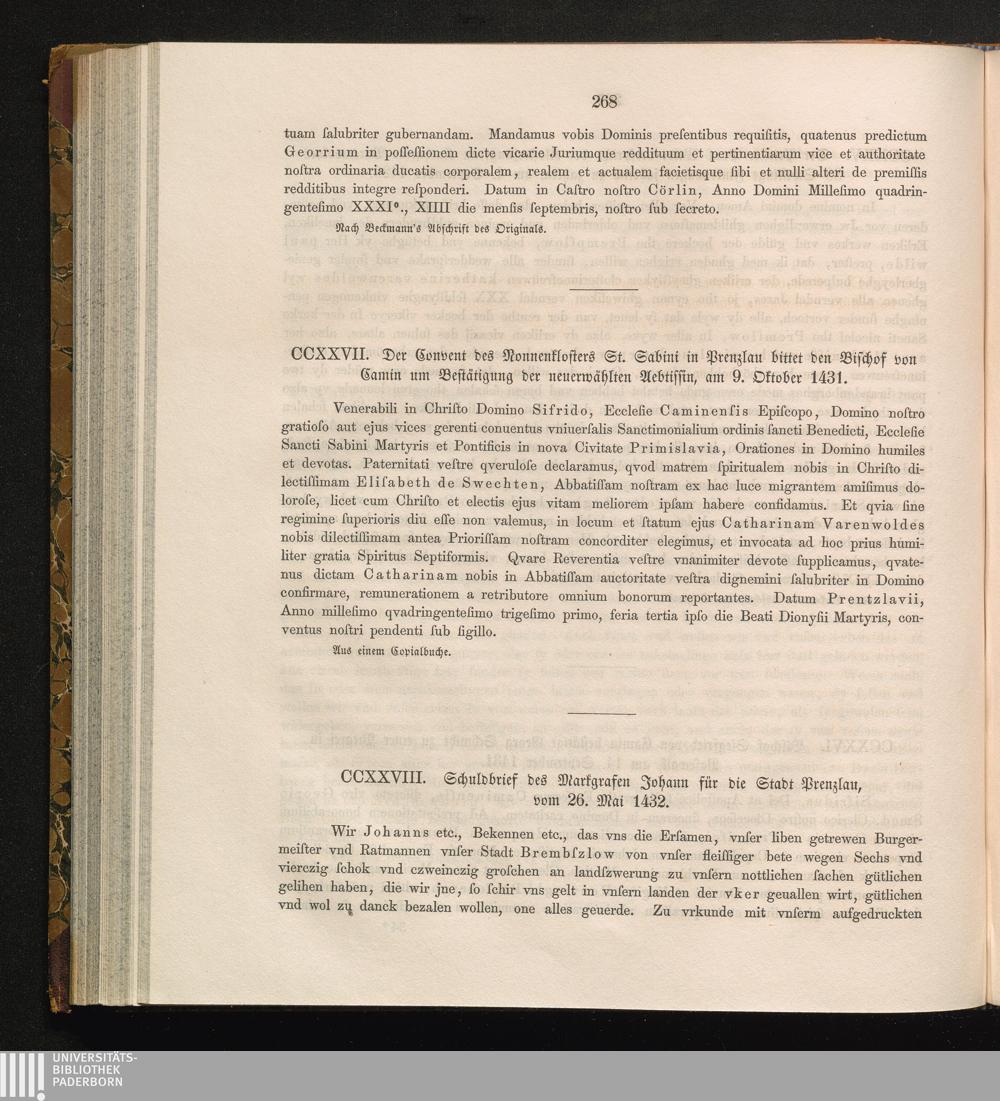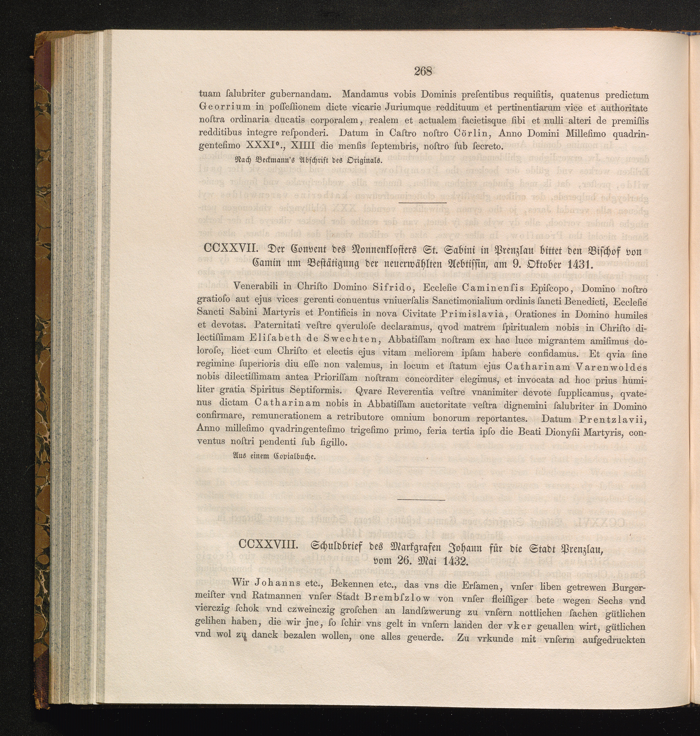 CCXXVIII. Schuldbrief des Markgrafen Johann für die Stadt Prenzlau, vom 26. Mai [...]