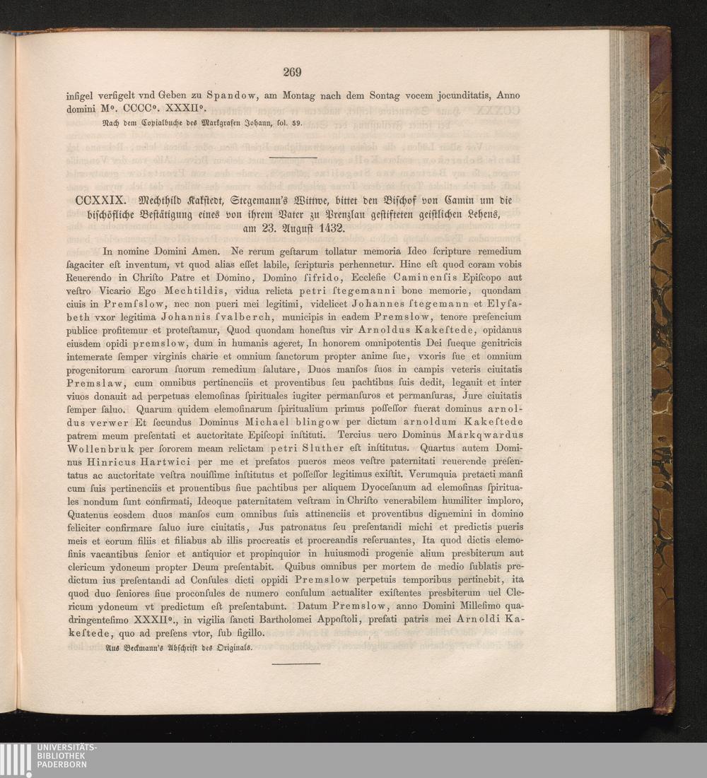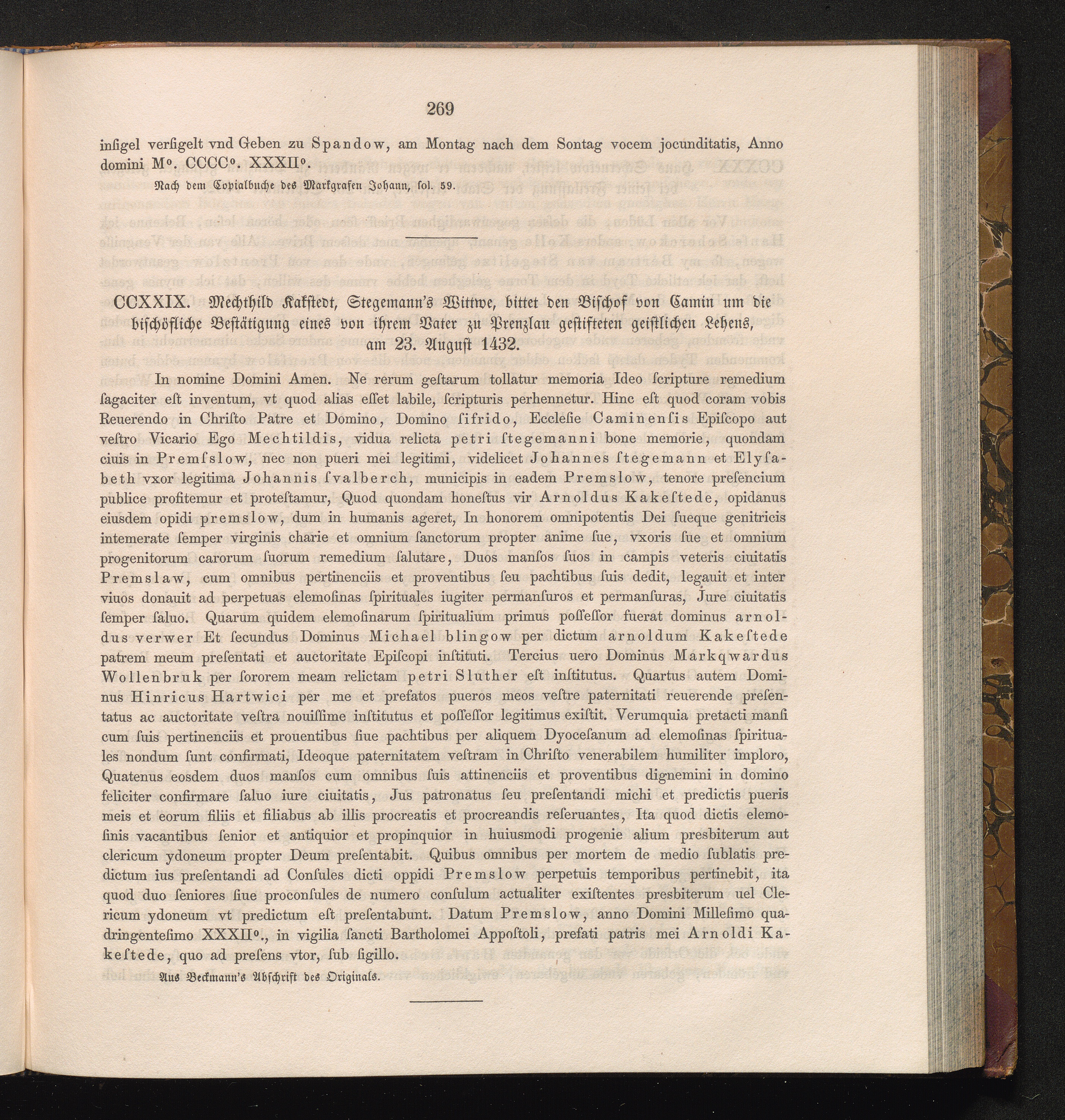 CCXXIX. Mechthild Kakstedt, Stegemann’s Wittwe, bittet den Bischof von Camin um die[...]