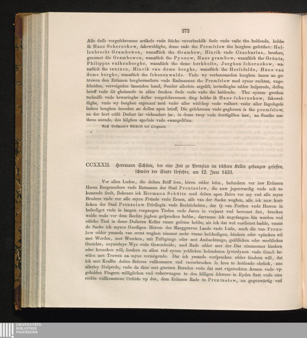 CCXXXII. Herrmann Schütte, der eine Zeit zu Prenzlau im düstern Keller gefangen gesessen,[...]