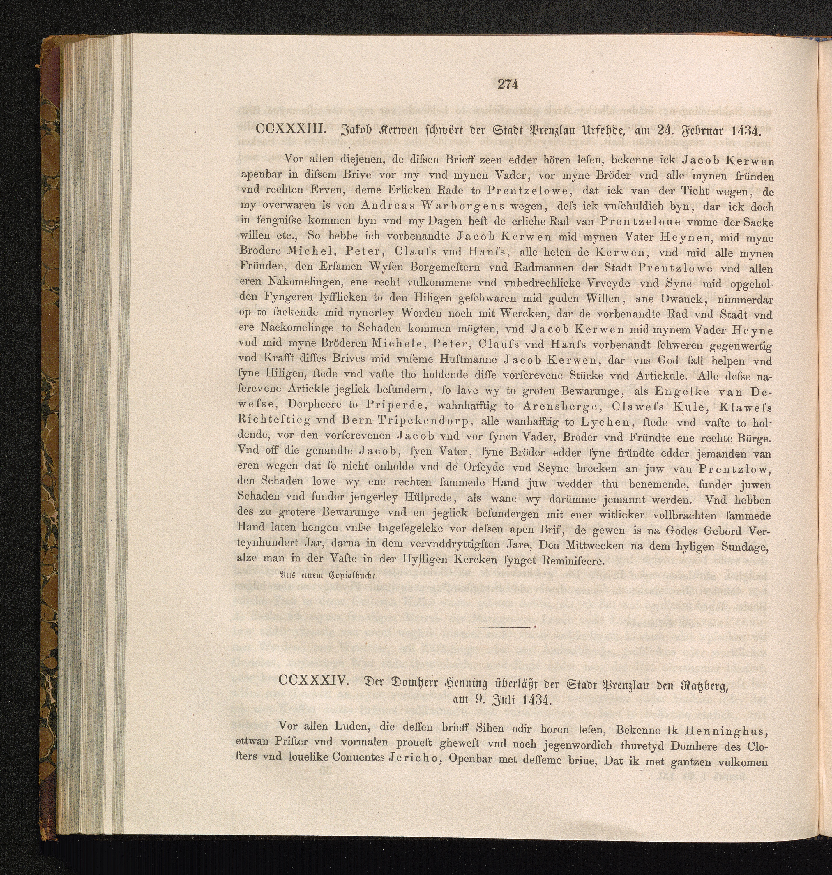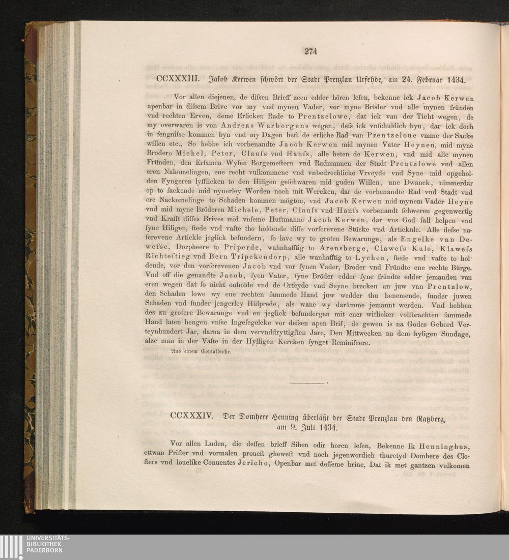 CCXXXIV. Der Domherr Henning überläßt der Stadt Prenzlau den Ratzberg, am 9. Juli[...]