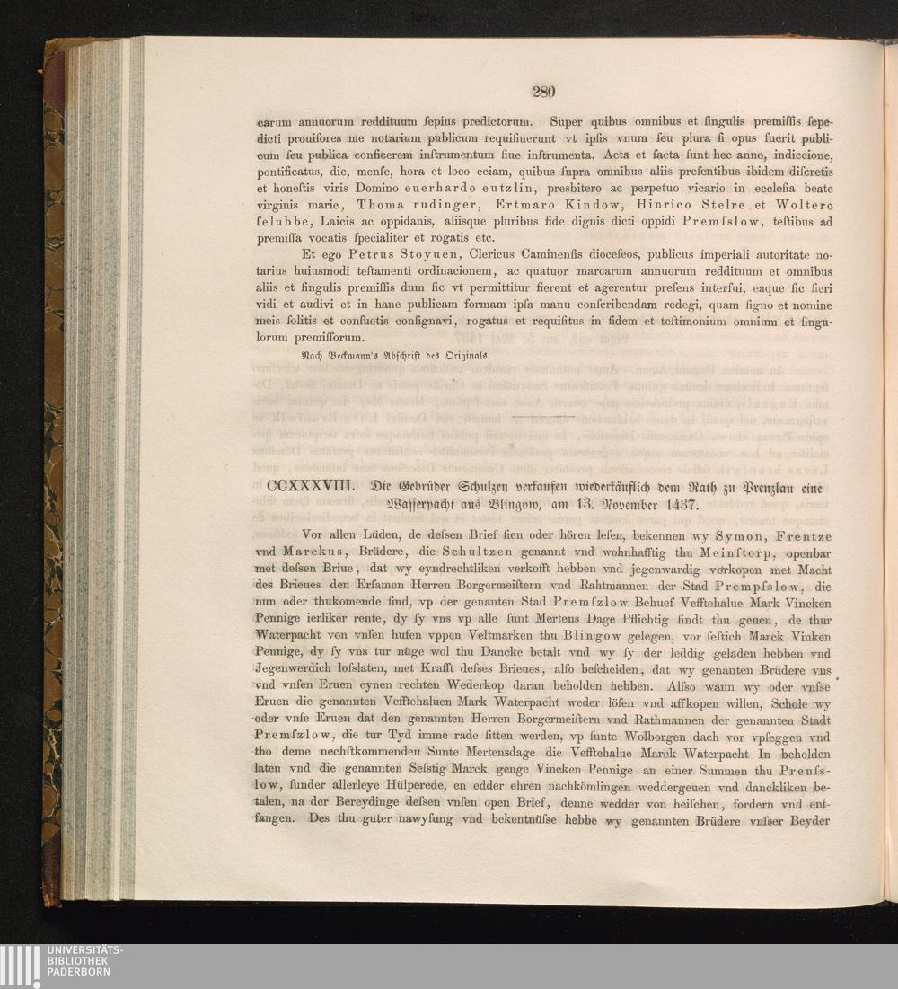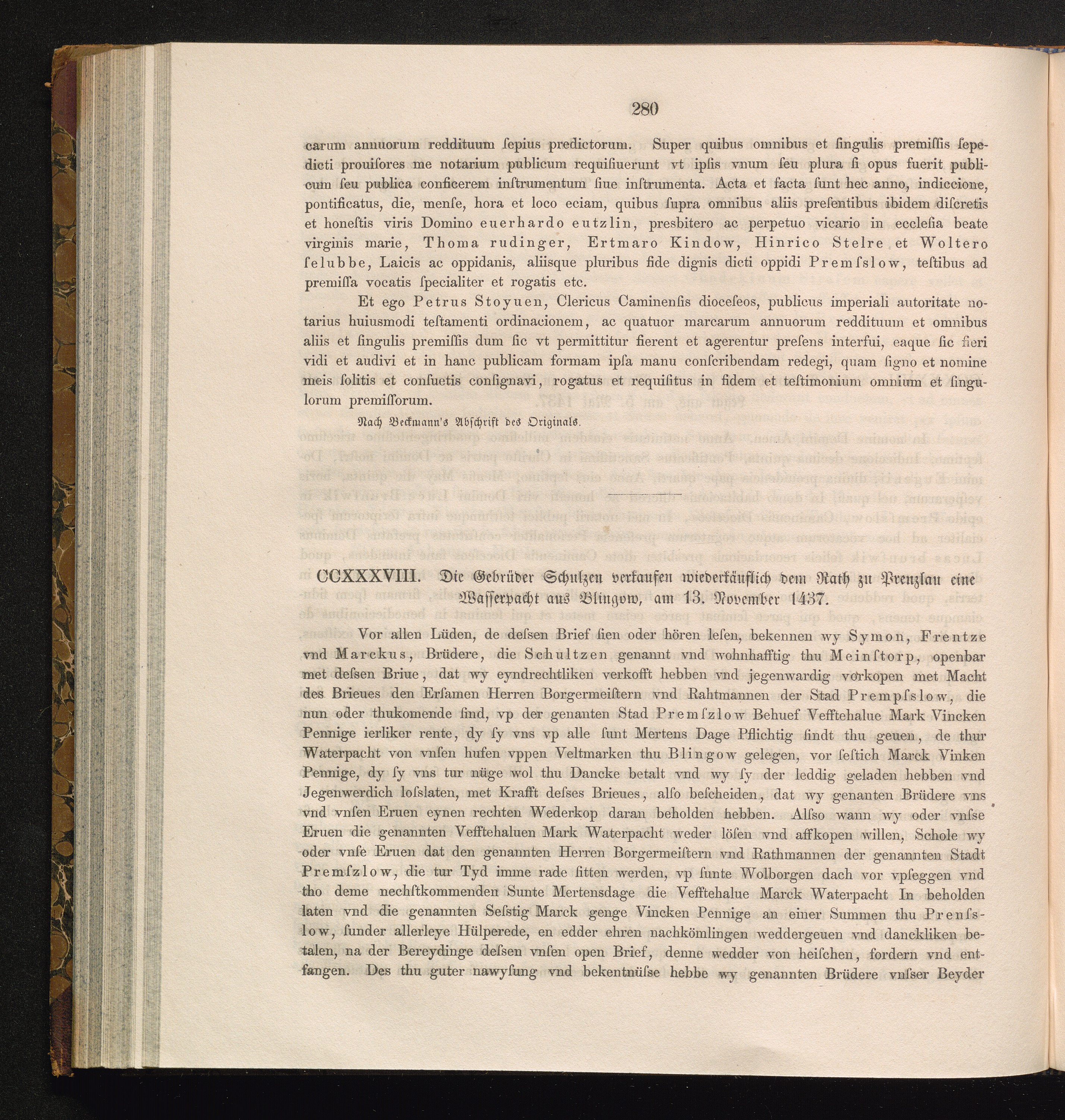 CCXXXVIII. Die Gebrüder Schulzen verkaufen wiederkäuflich dem Rath zu Prenzlau eine[...]