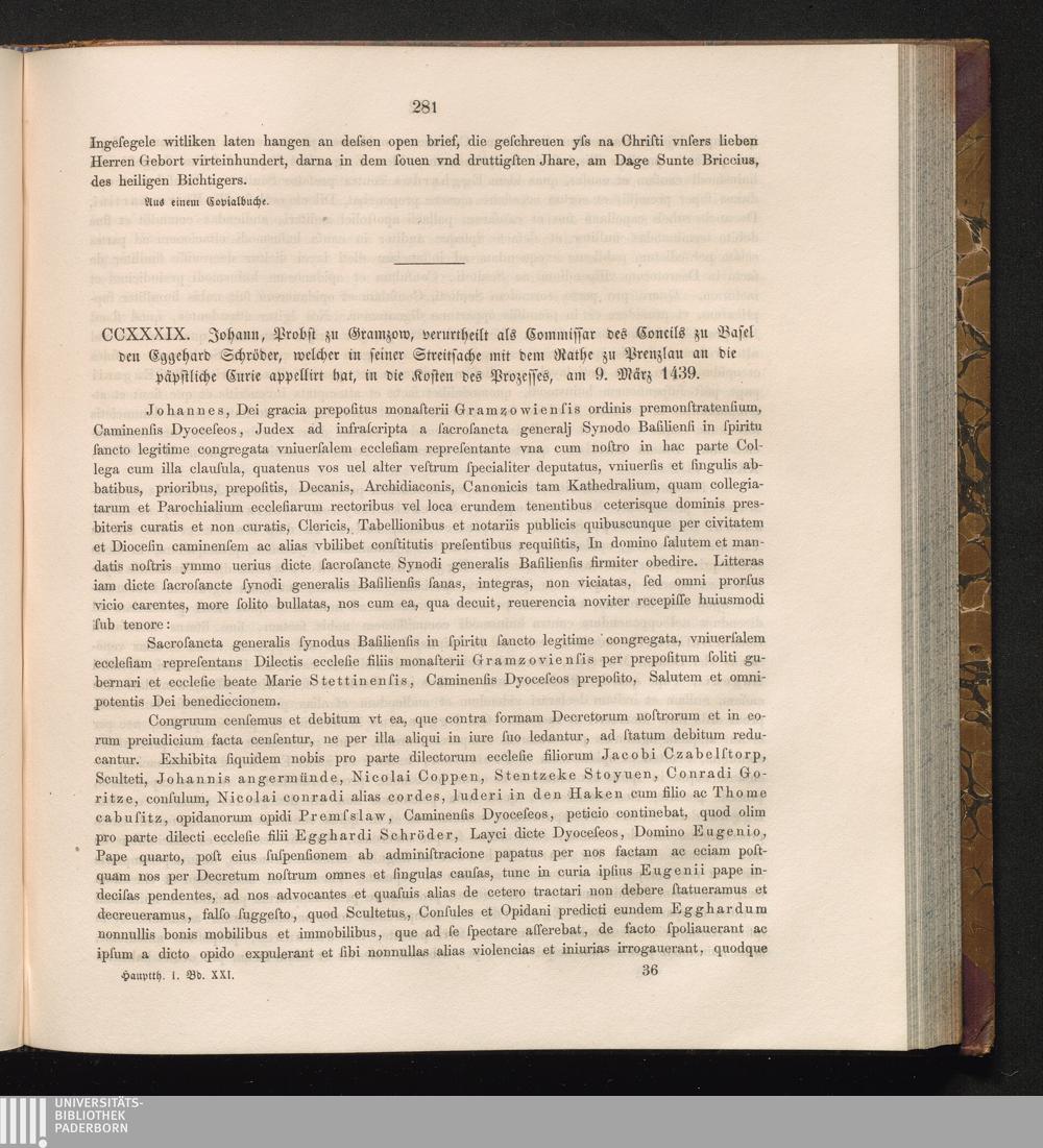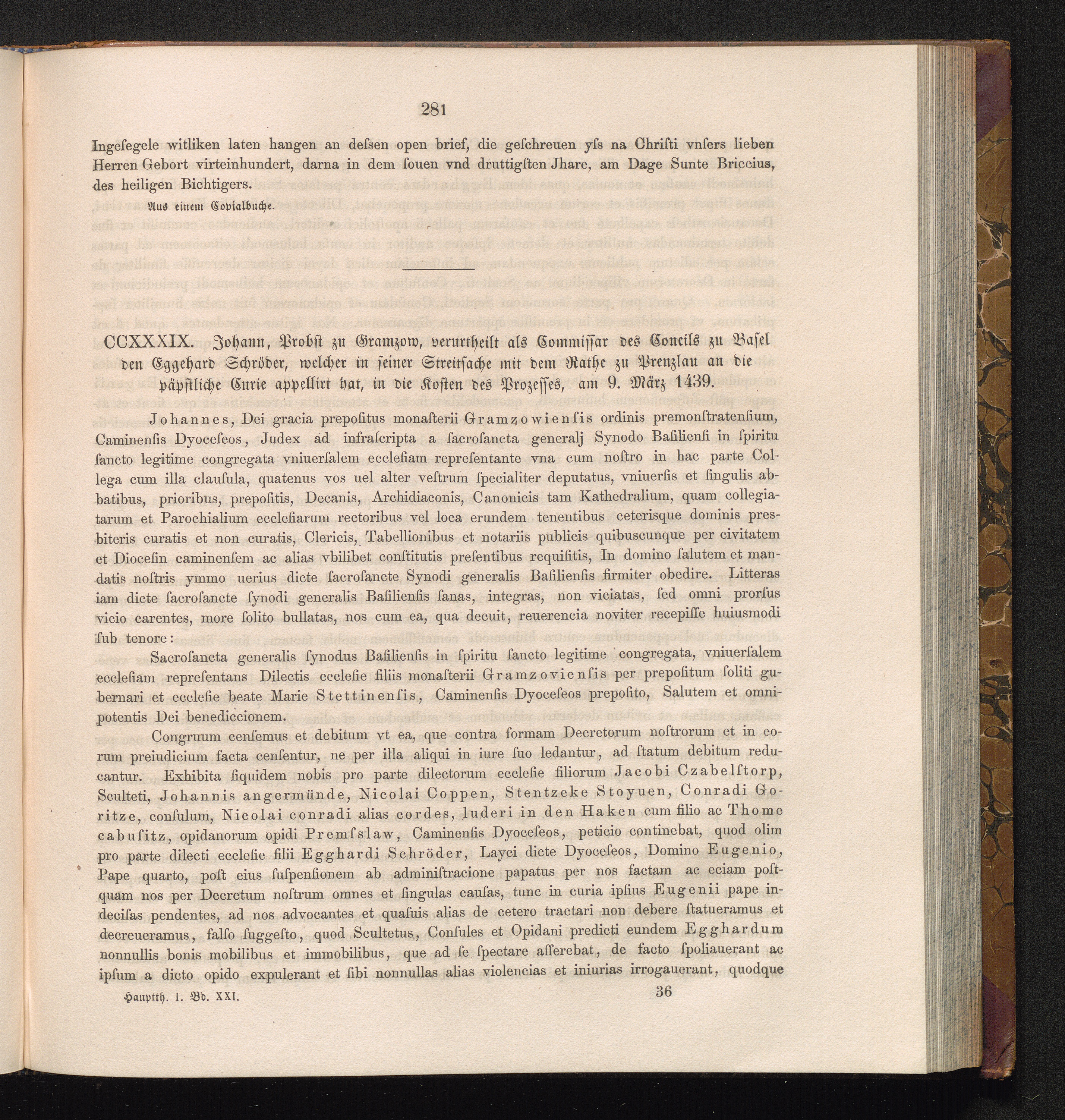 CCXXXIX. Johann, Probst zu Gramzow, verurtheilt als Commissar des Coneils zu Basel[...]