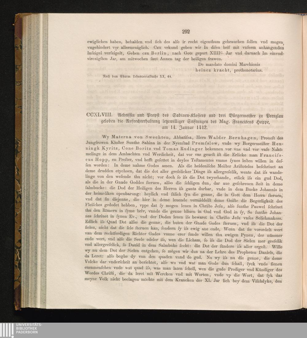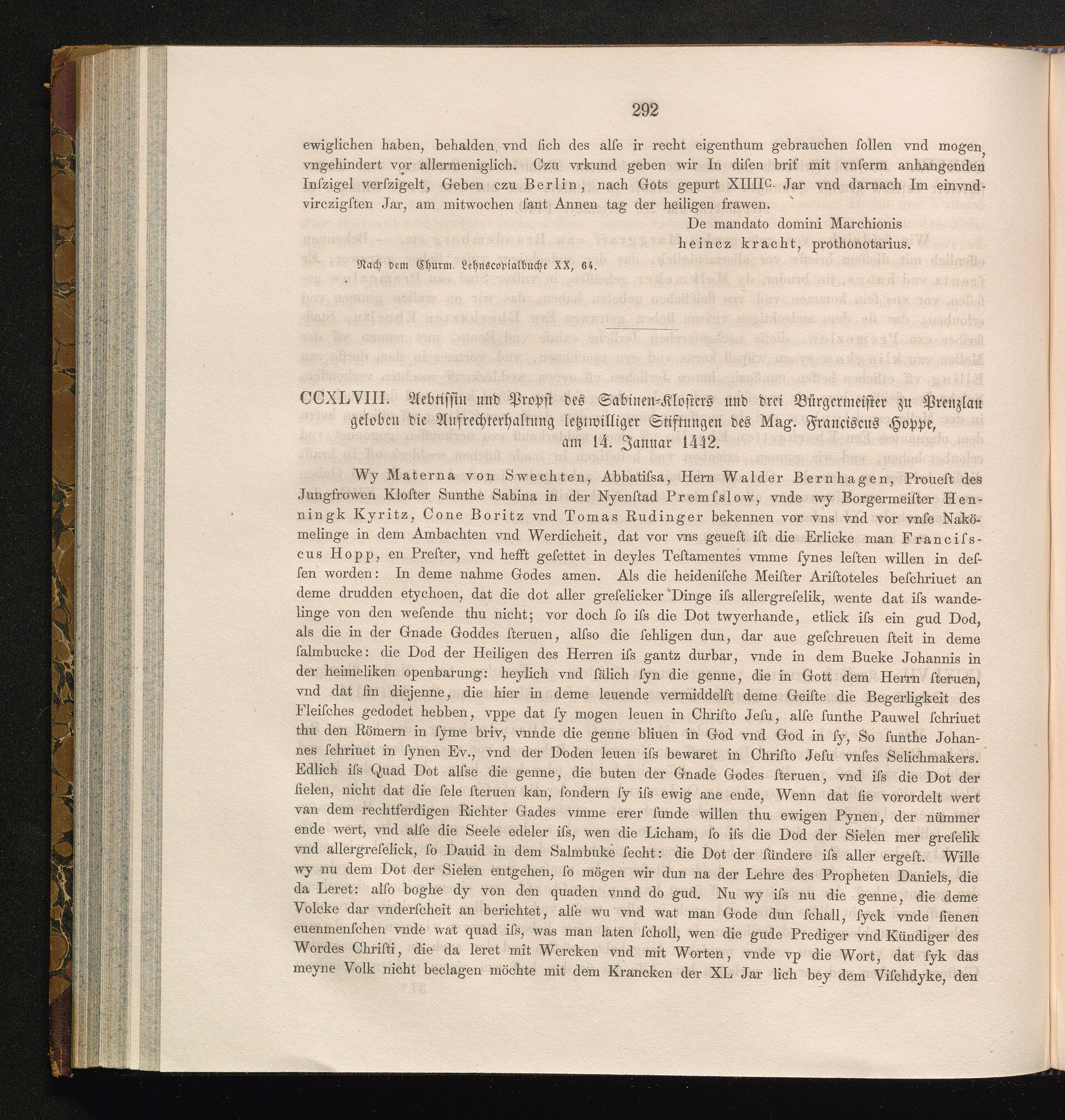 CCXLVIII. Aebtissin und Probst des Sabinen-Klosters und drei Bürgermeister zu Prenzlau[...]