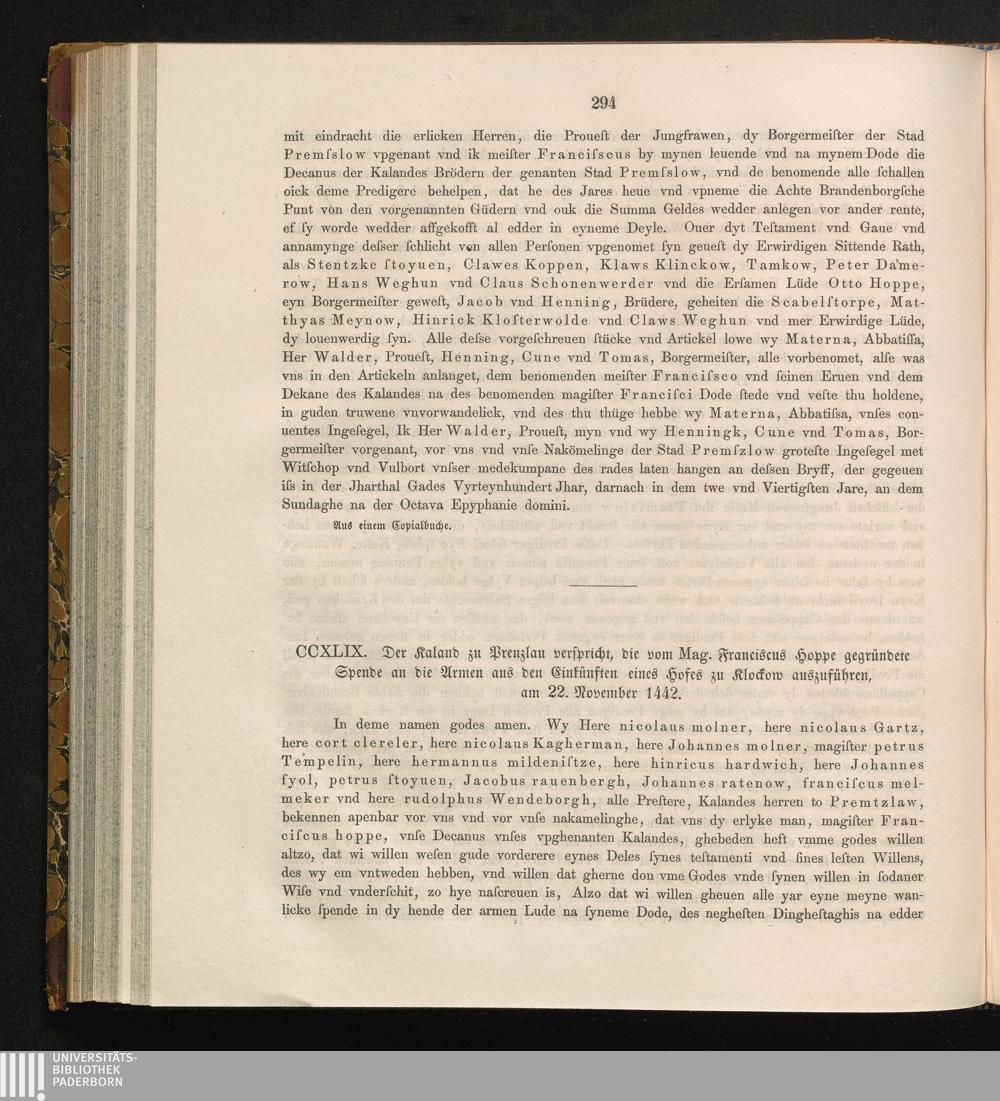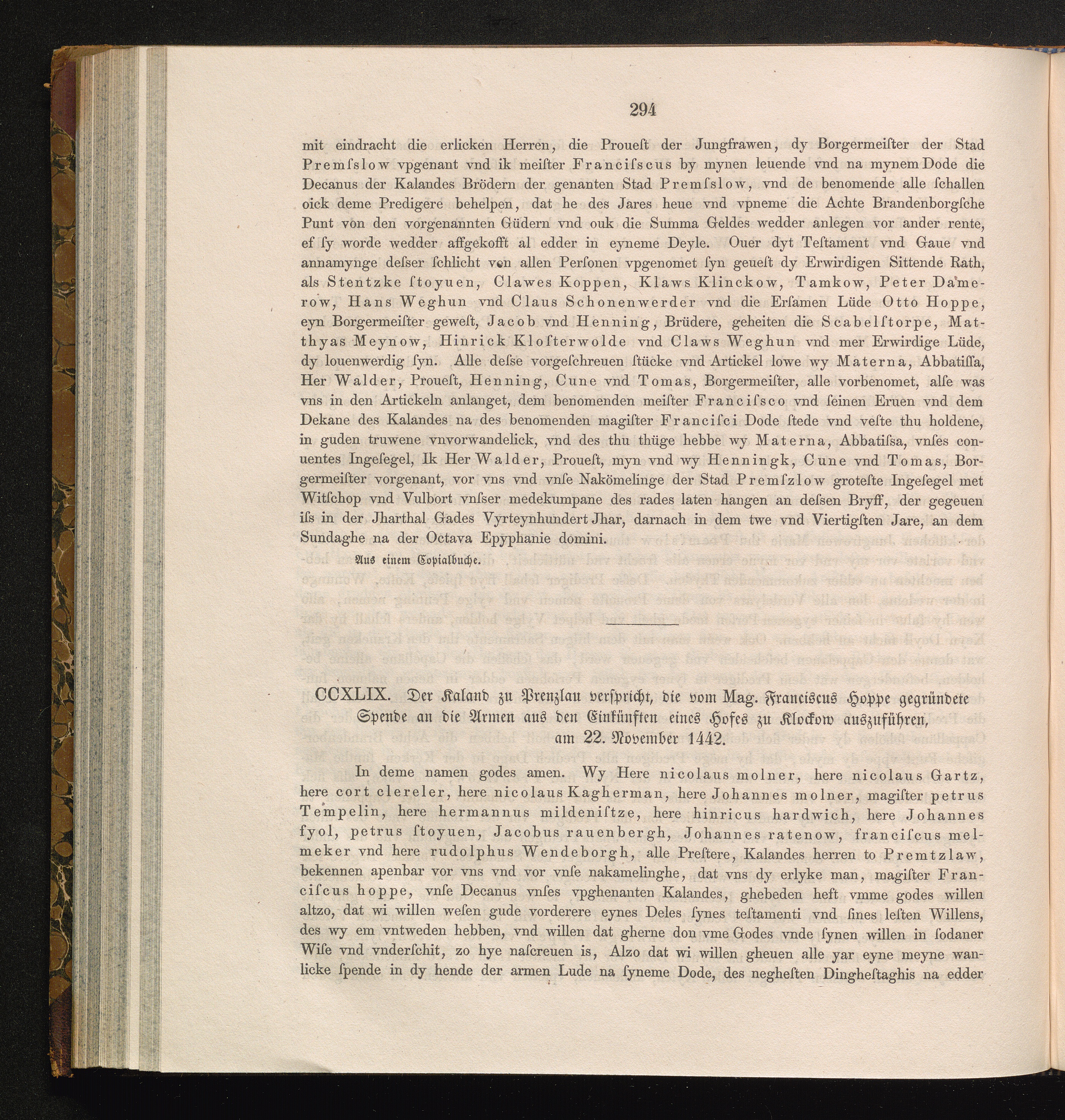 CCXLIX. Der Kaland zu Prenzlau verspricht, die vom Mag. Franciscus Hoppe gegründete[...]