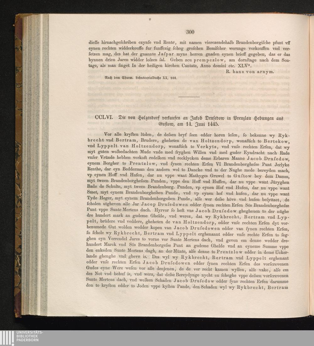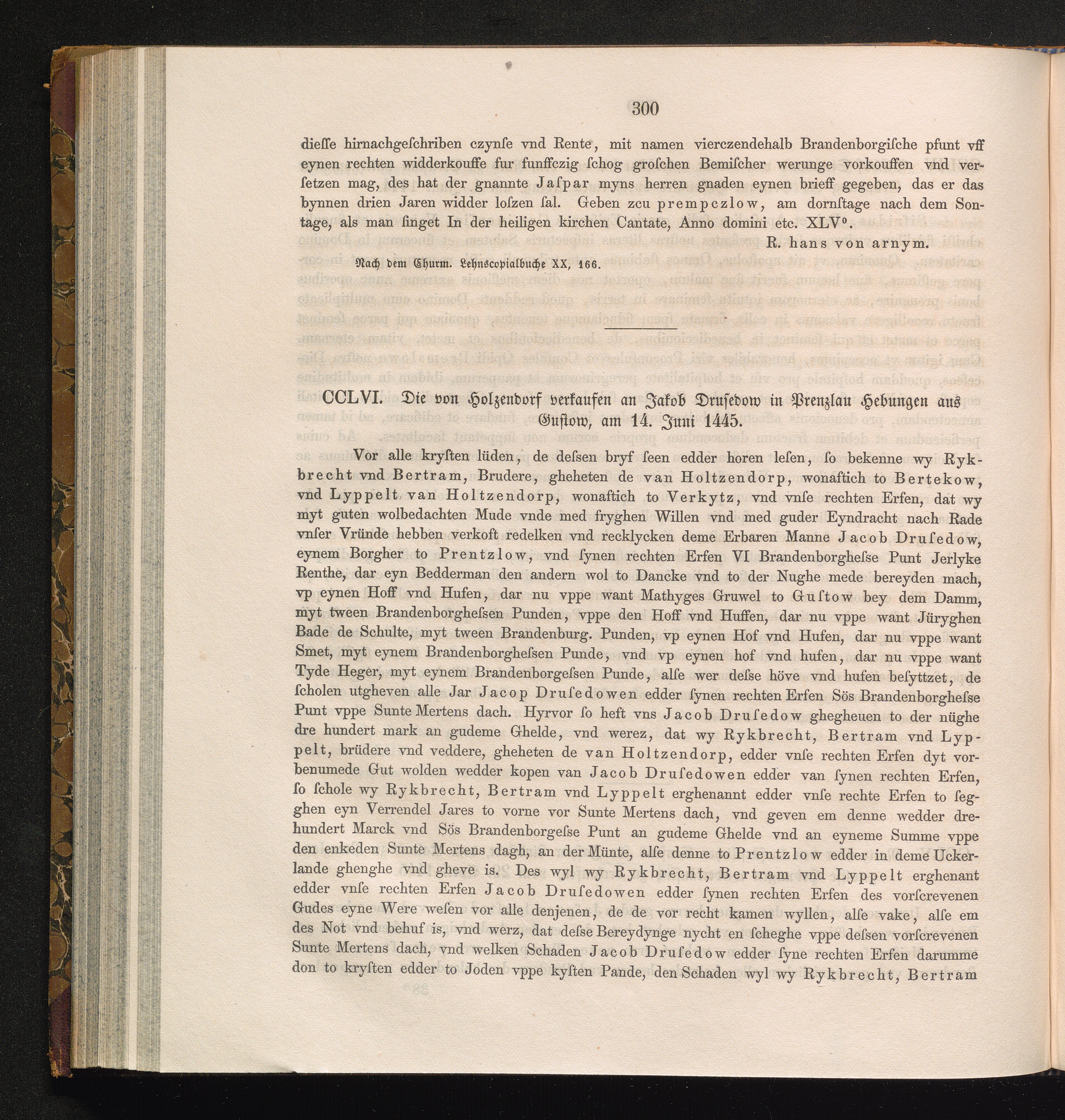 CCLVI. Die von Holzendorf verkaufen an Jakob Drusedow in Prenzlau Hebungen aus Gustow,[...]