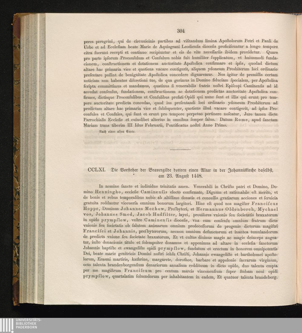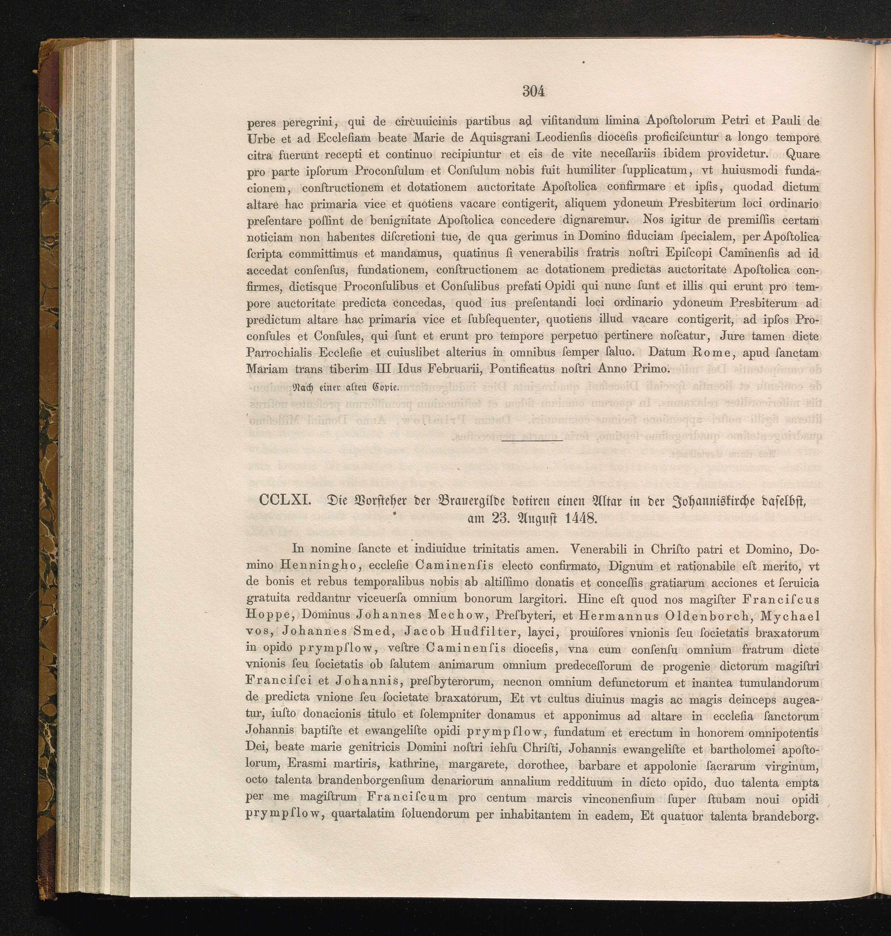 CCLXI. Die Vorsteher der Brauergilde dotiren einen Altar in der Johanniskirche daselbst,[...]