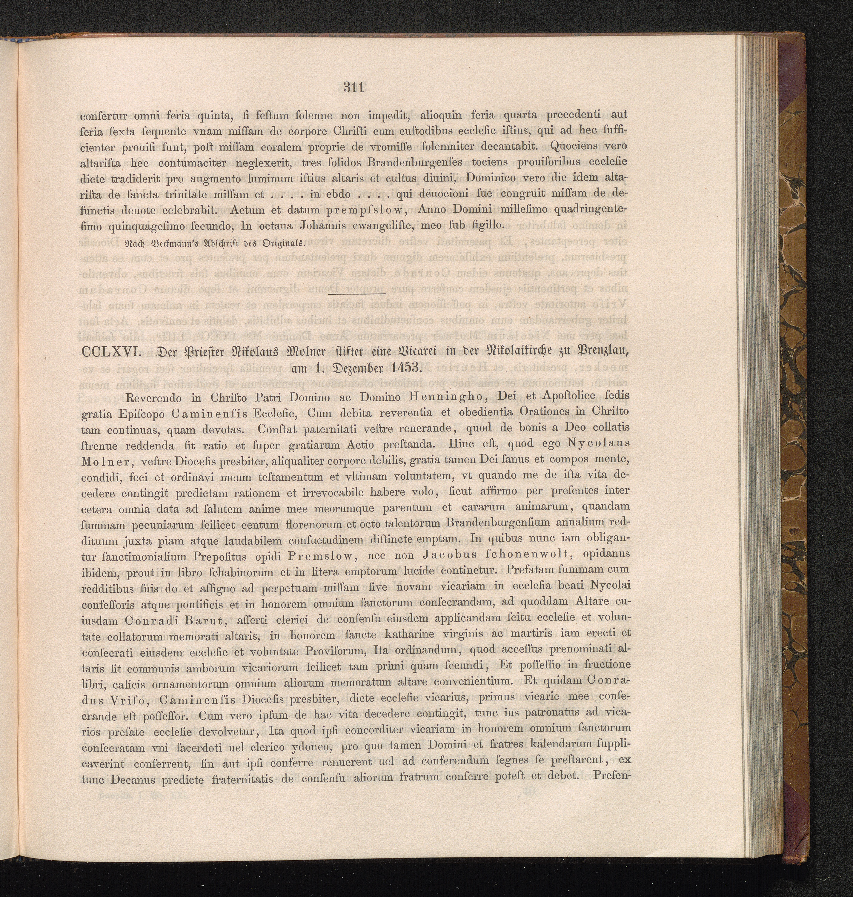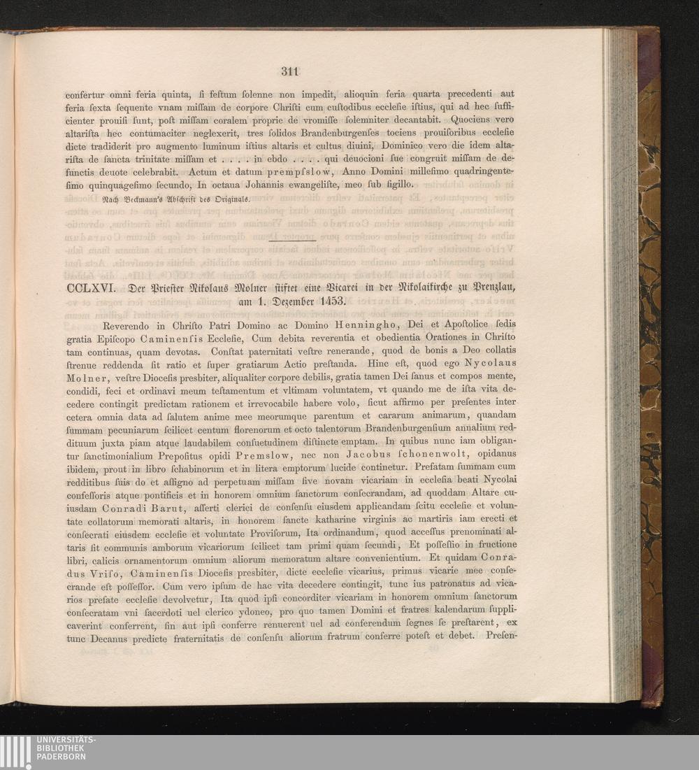 CCLXVI. Der Priester Nikolaus Molner stiftet eine Vicarei in der Nicolaikirche zu[...]