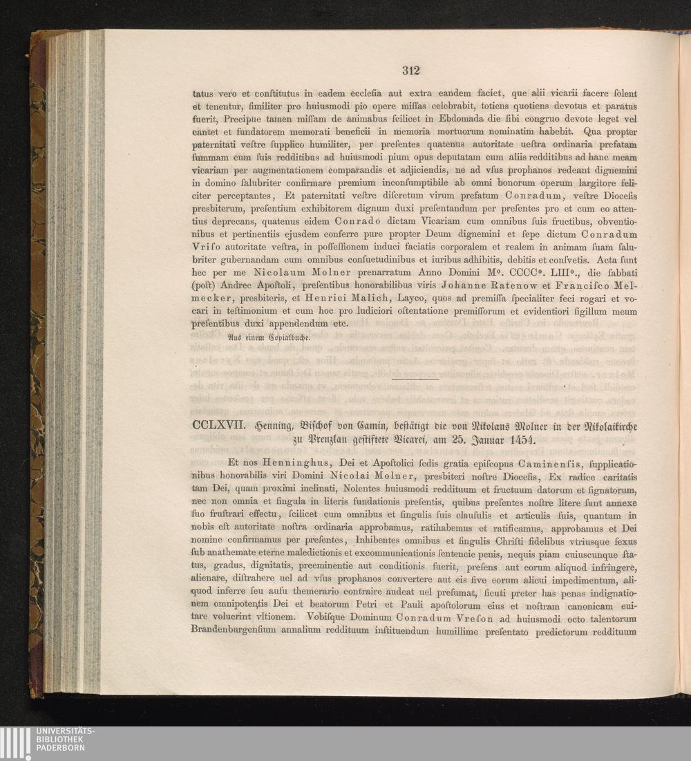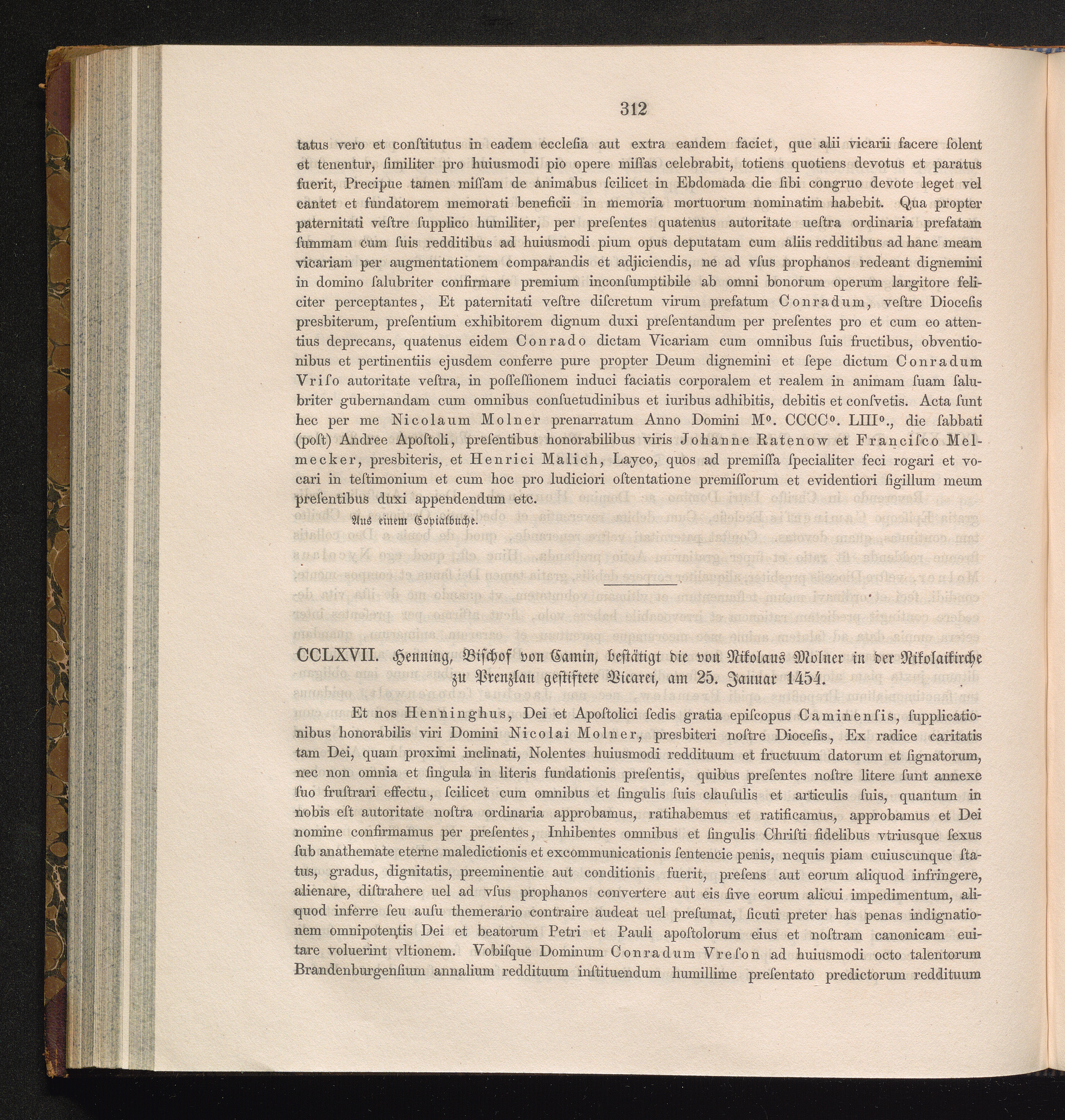 CCLXVII. Henning, Bischof von Camin, bestätigt die von Nikolaus Molner in der Nikolaikirche[...]
