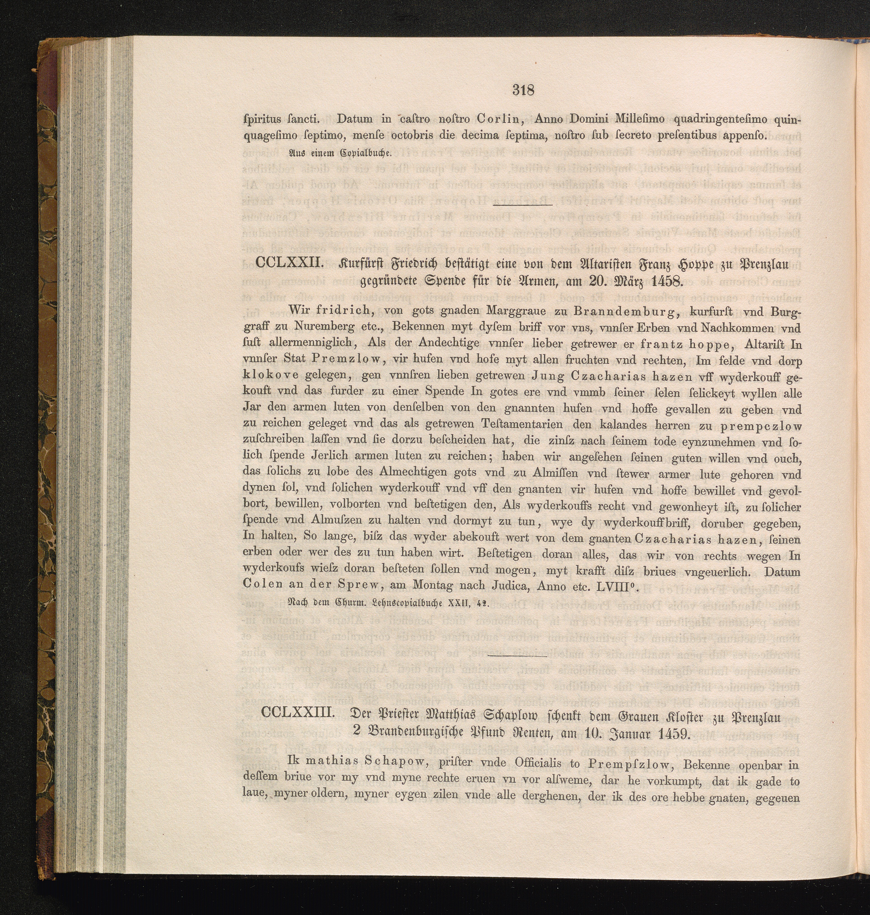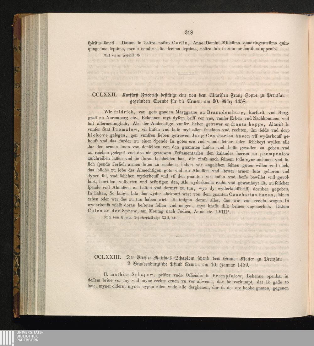 CCLXXIII. Der Priester Matthias Schaplow schenkt dem Grauen Kloster zu Prenzlau 2[...]