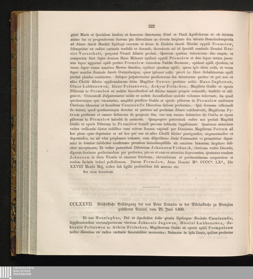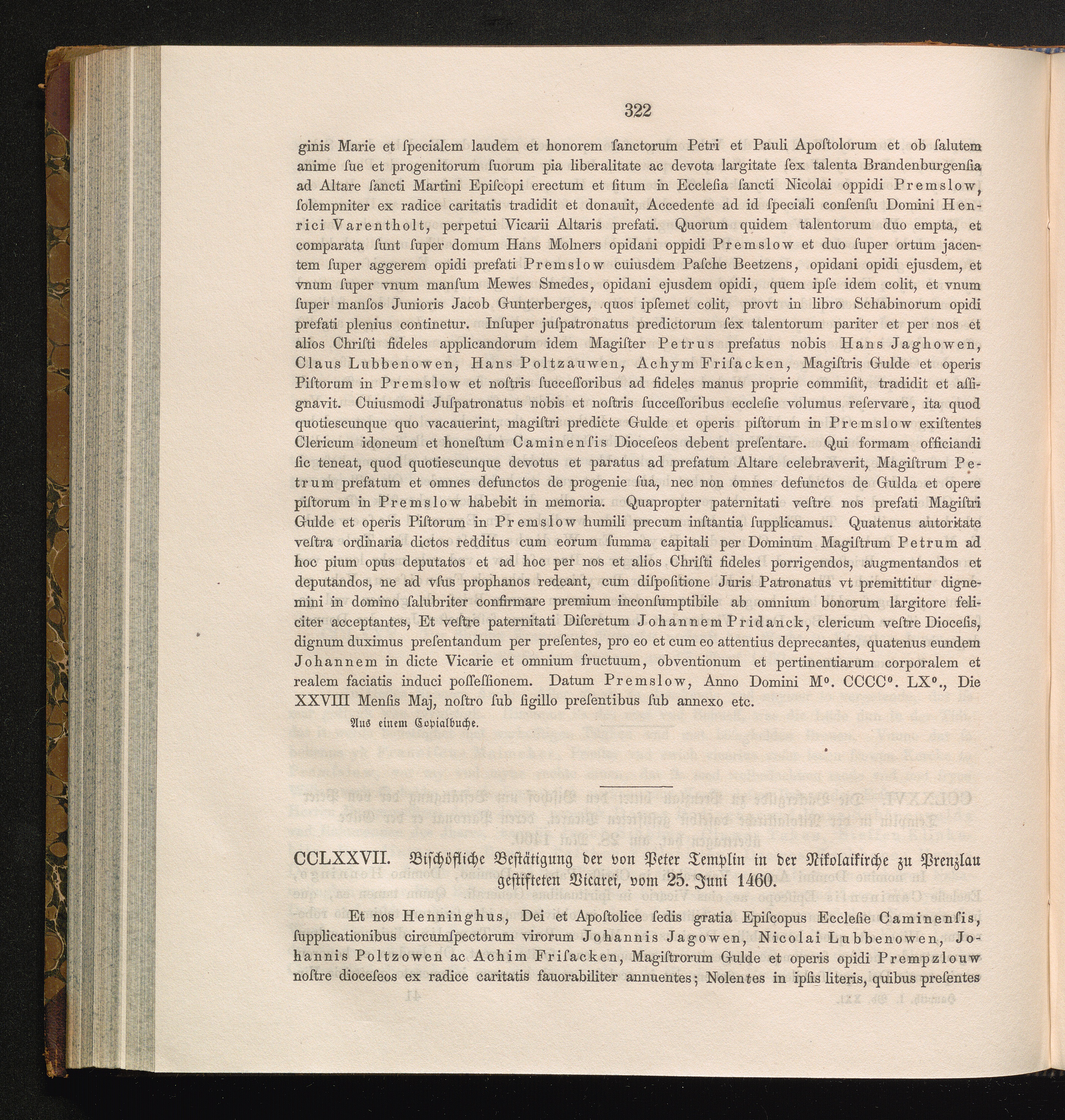 CCLXXVII. Bischöfliche Bestätigung der von Peter Templin in der Nikolaikirche zu[...]