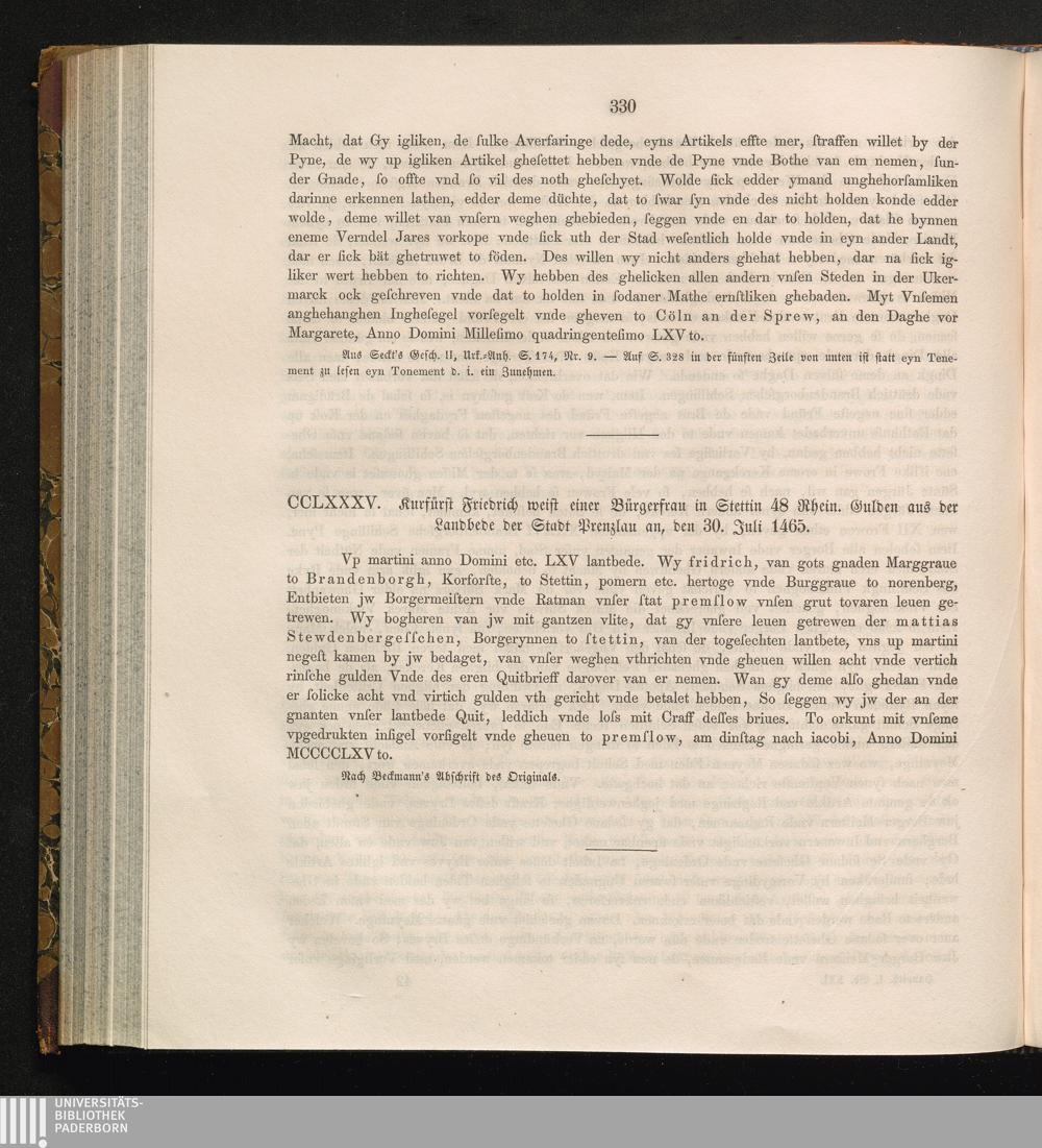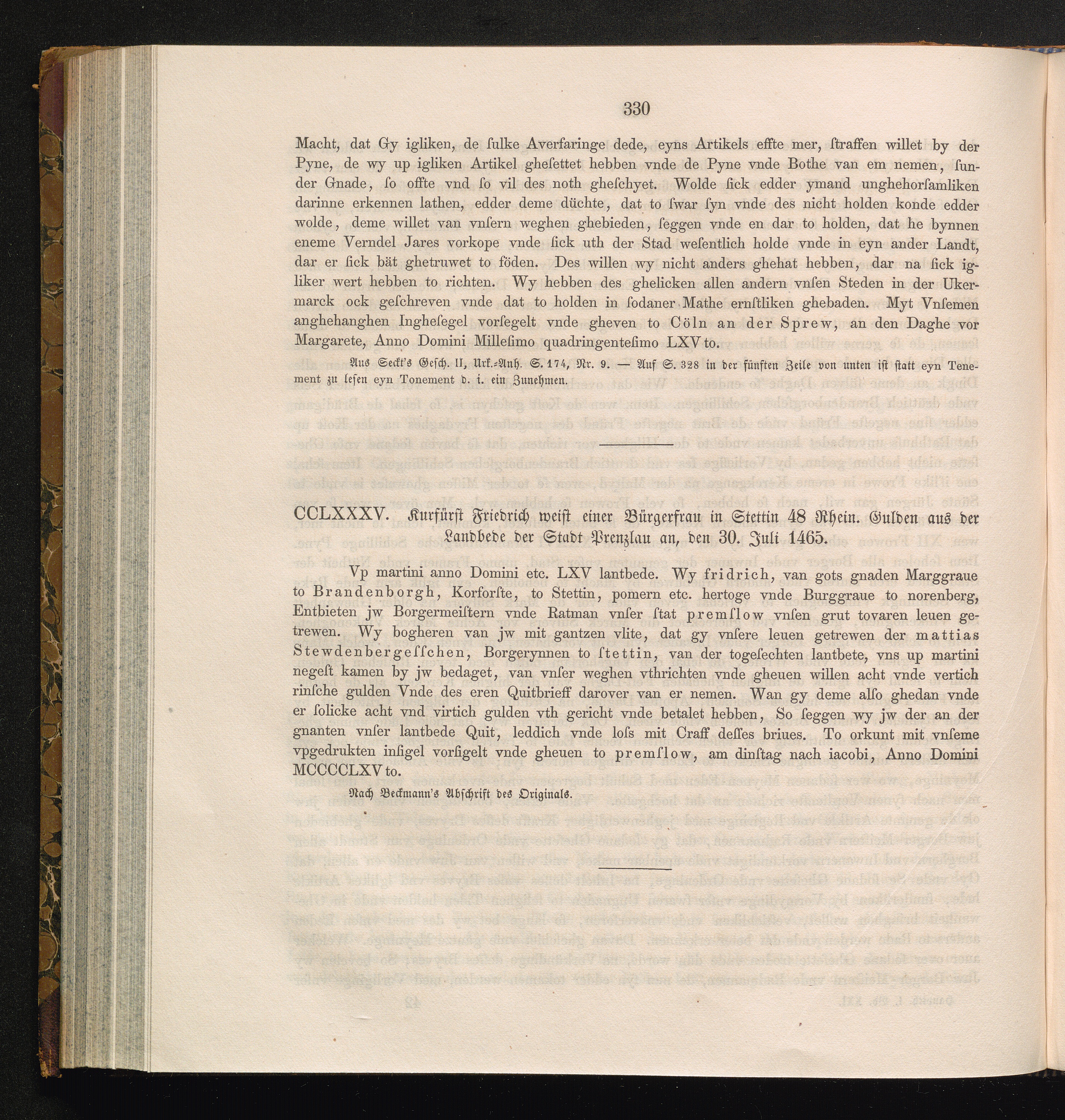 CCLXXXV. Kurfürst Friedrich weist einer Bürgerfrau in Stettin 48 Rhein. Gulden aus[...]
