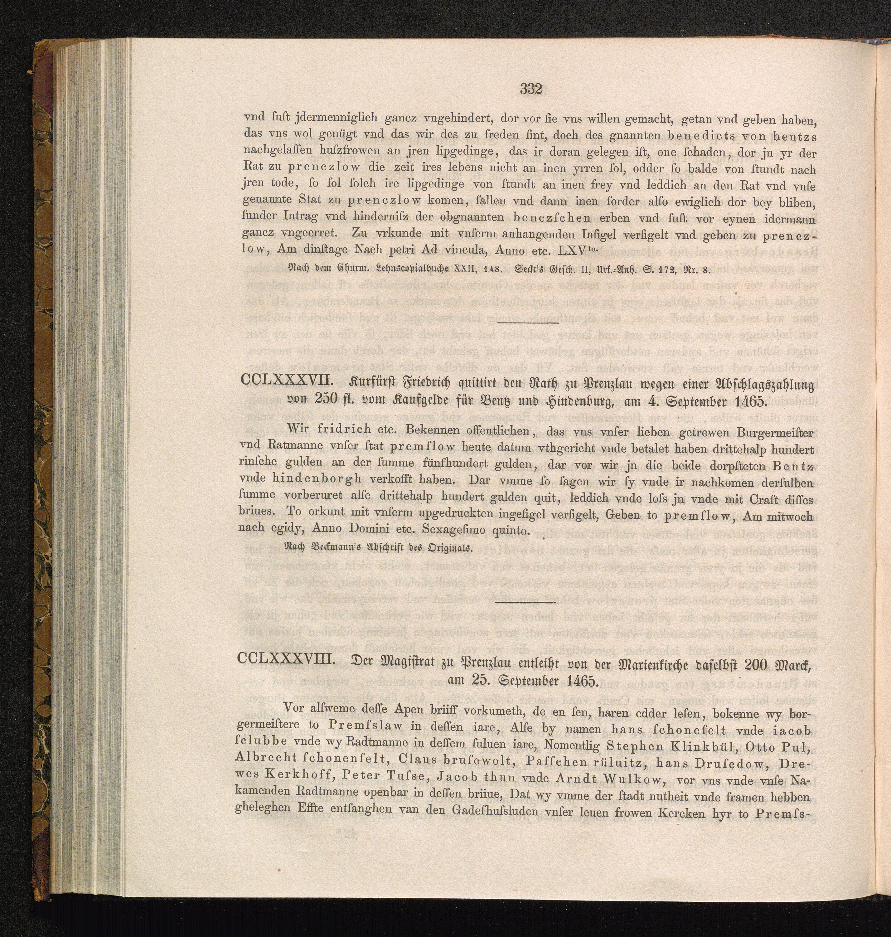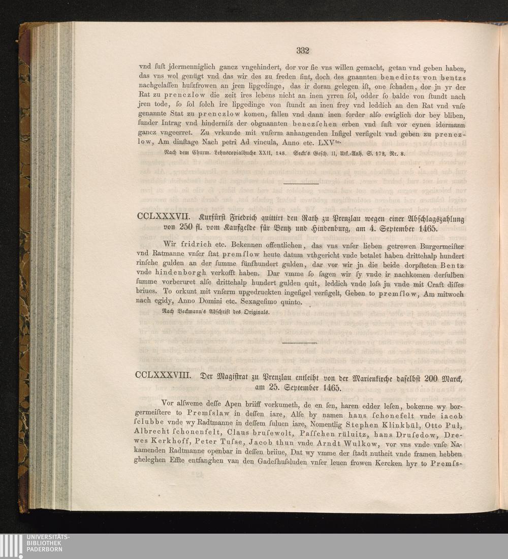 CCLXXXVIII. Der Magistrat zu Prenzlau entleiht von der Marienkirche daselbst 200[...]