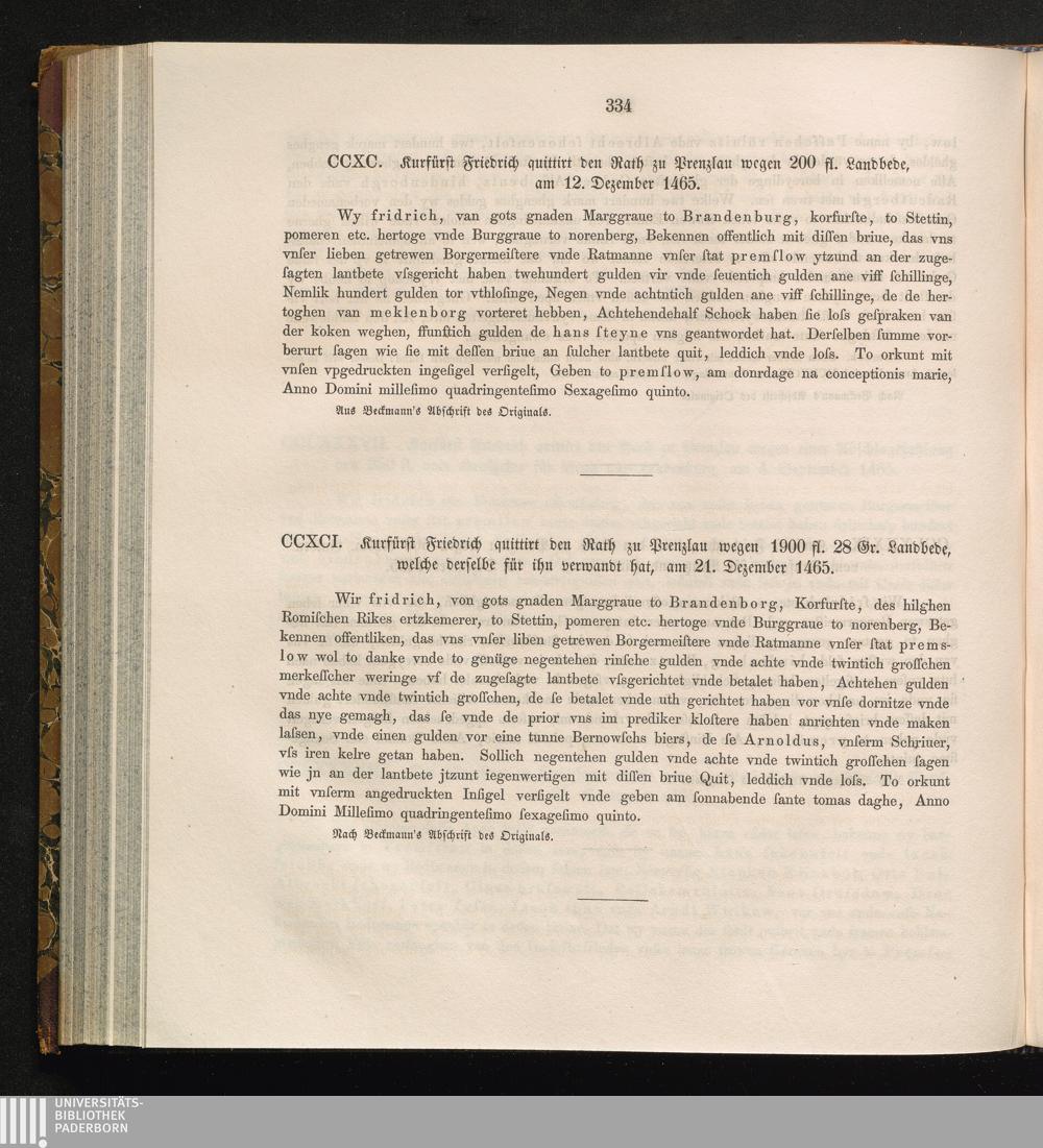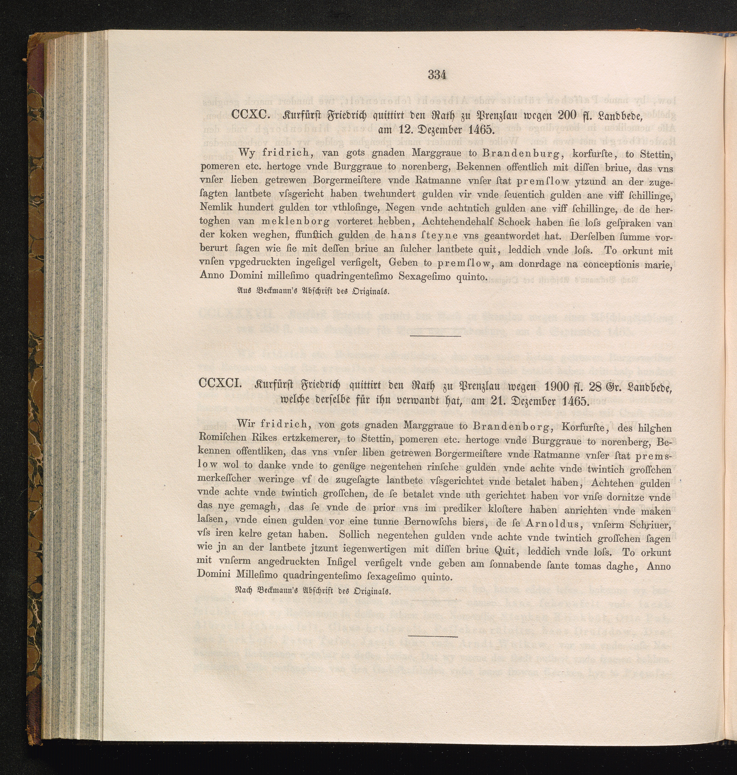CCXCI. Kurfürst Friedrich quittirt den Rath zu Prenzlau wegen 1900 fl. 28 Gr. Landbede,[...]