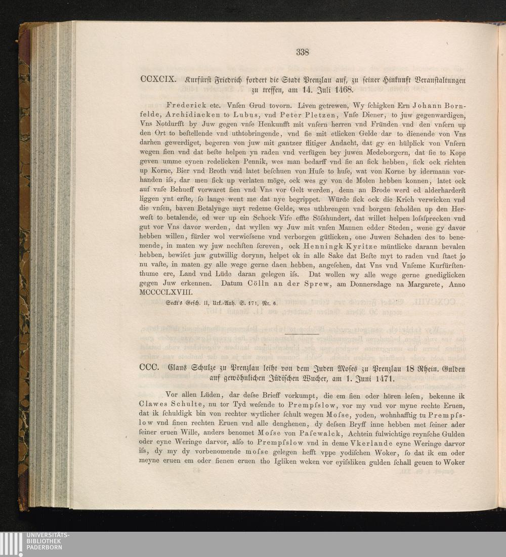 CCC. Claus Schulze zu Prenzlau leiht von dem Juden Moses zu Prenzlau 18 Rhein. Gulden[...]