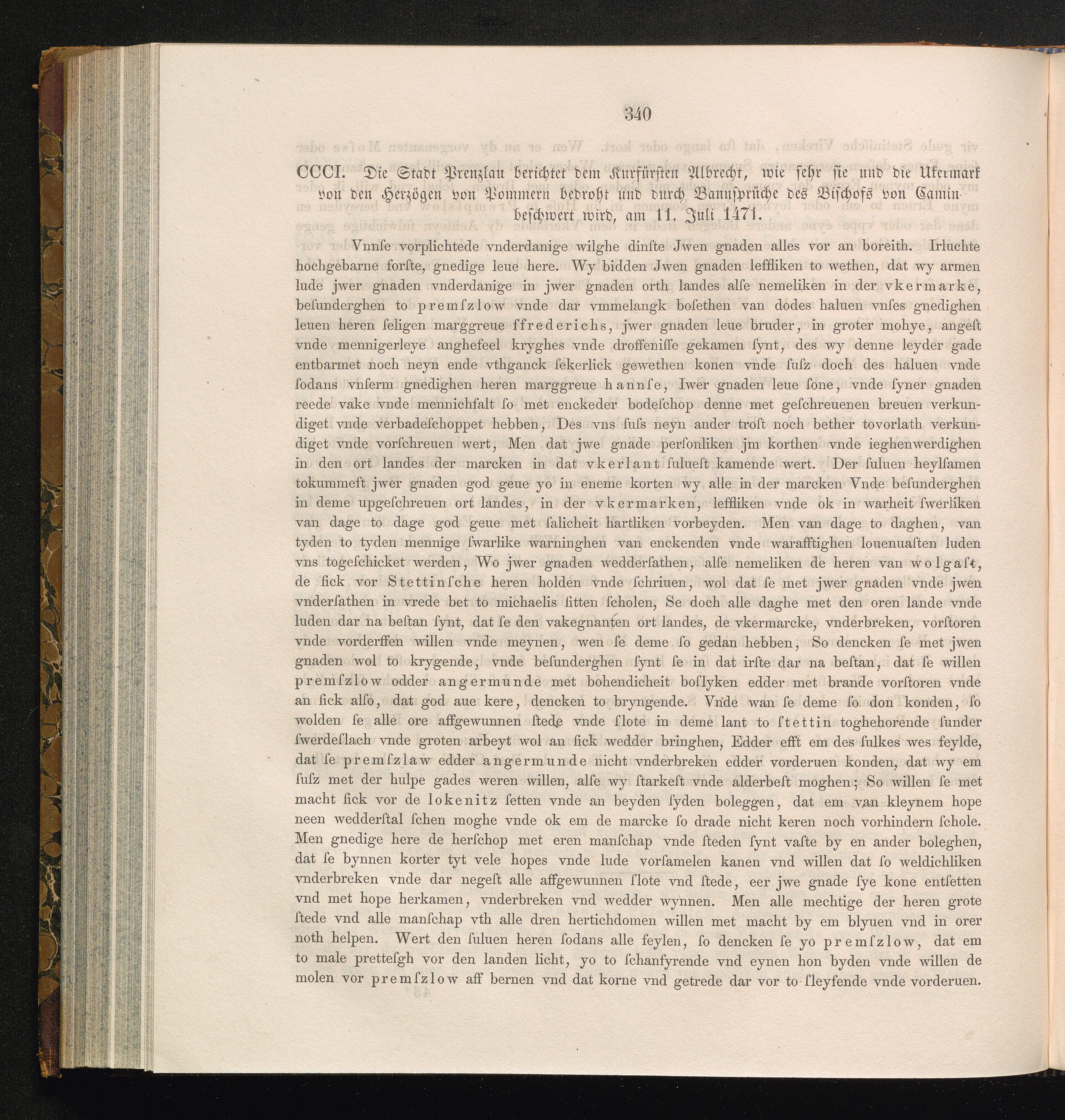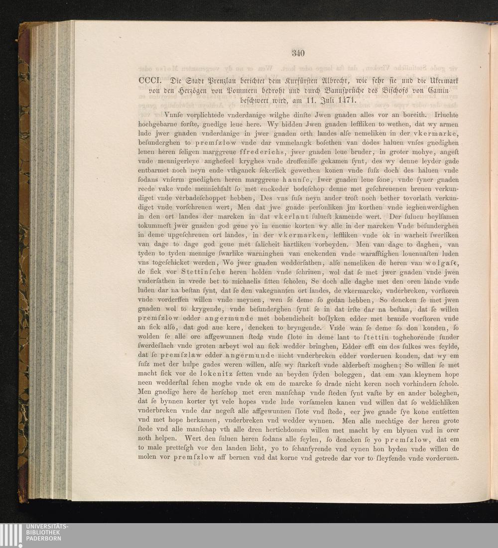 CCCI. Die Stadt Prenzlau berichtet dem Kurfürsten Albrecht, wie sehr sie und die[...]