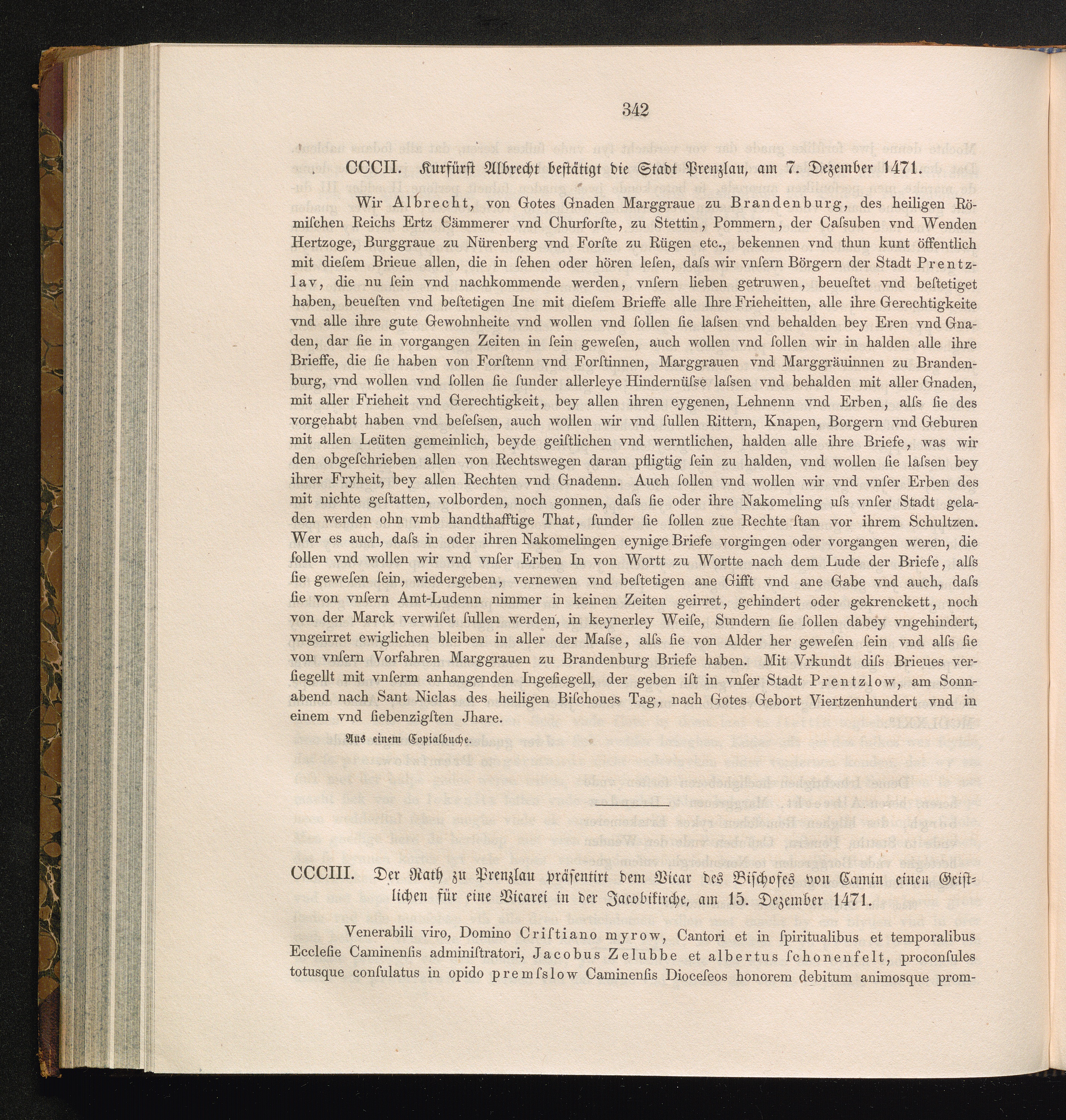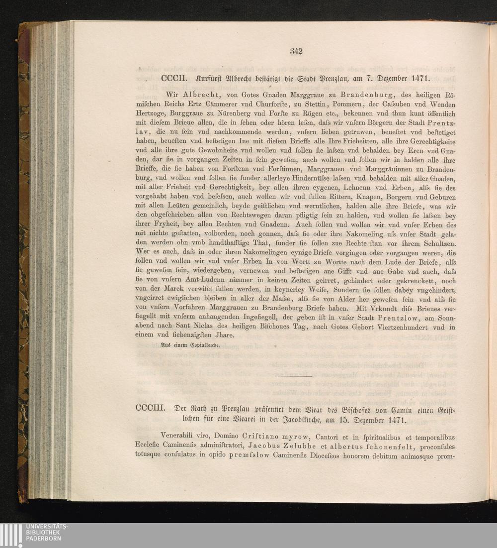 CCCIII. Der Rath zu Prenzlau präsentirt dem Vicar des Bischofes von Camin einen Geistlichen[...]