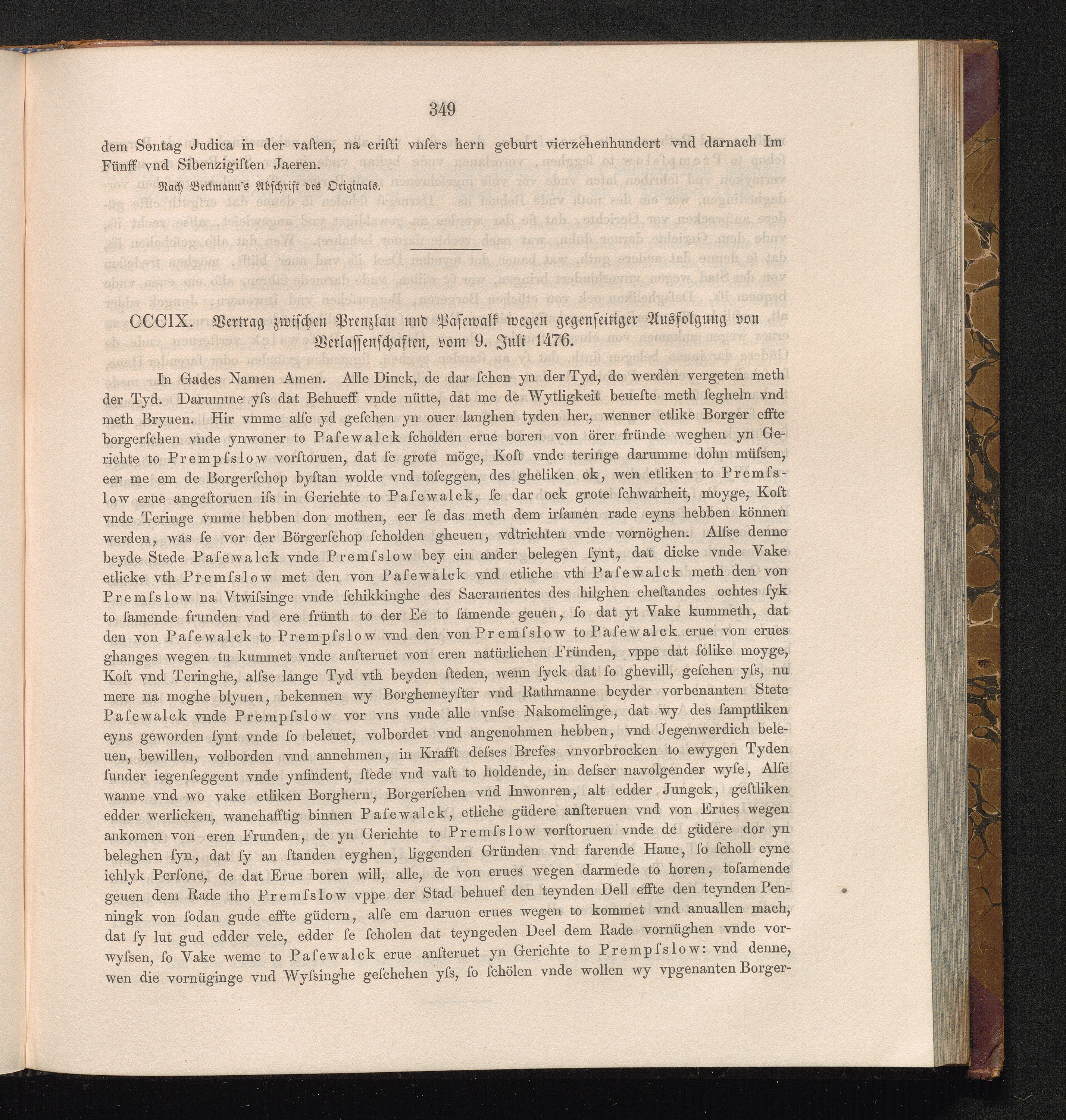 CCCIX. Vertrag zwischen Prenzlau und Pasewalk wegen gegenseitiger Ausfolgung von[...]