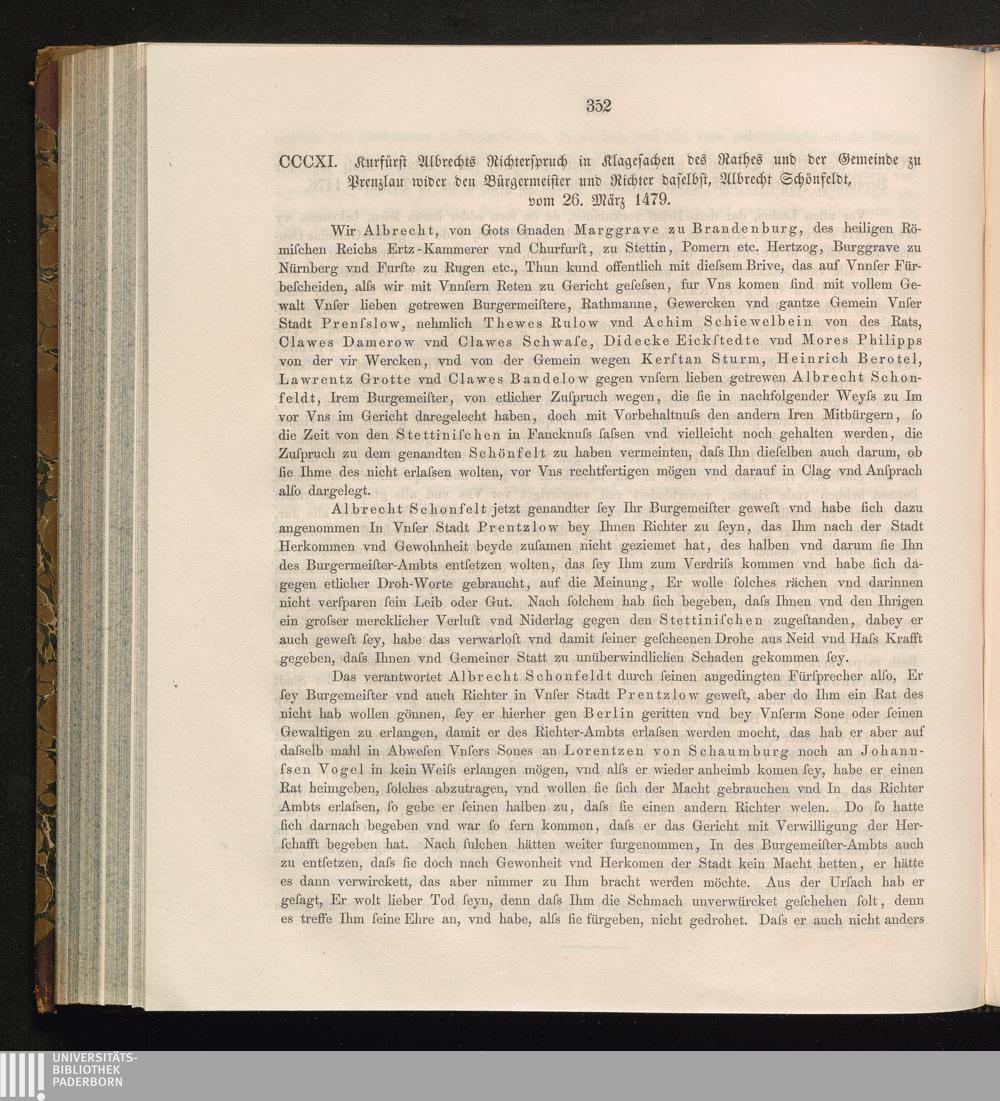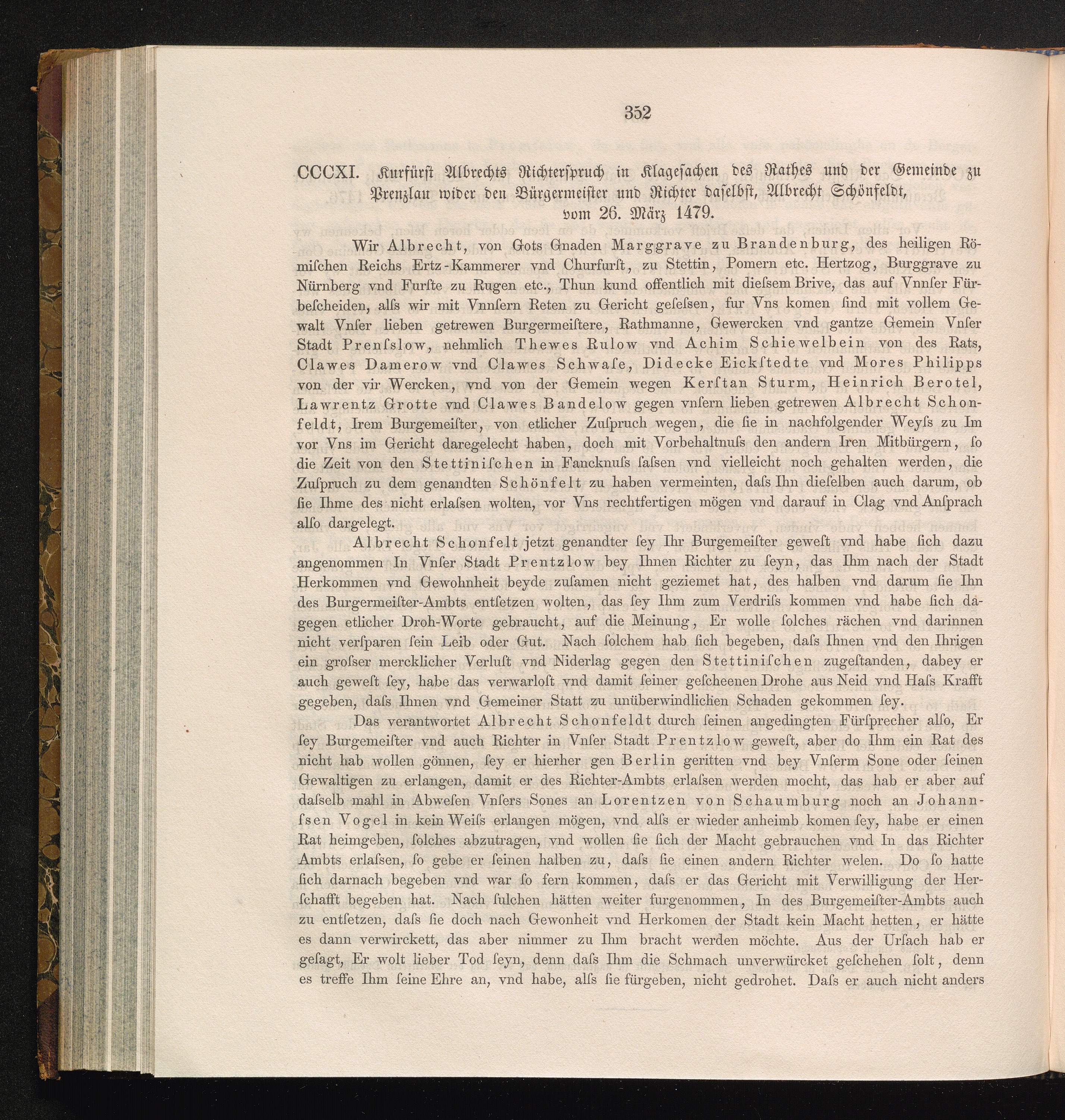 CCCXI. Kurfürst Albrechts Richterspruch in Klagesachen des Rathes und der Gemeinde[...]
