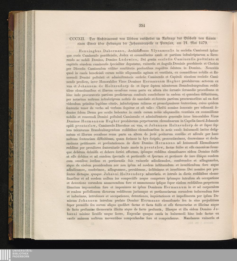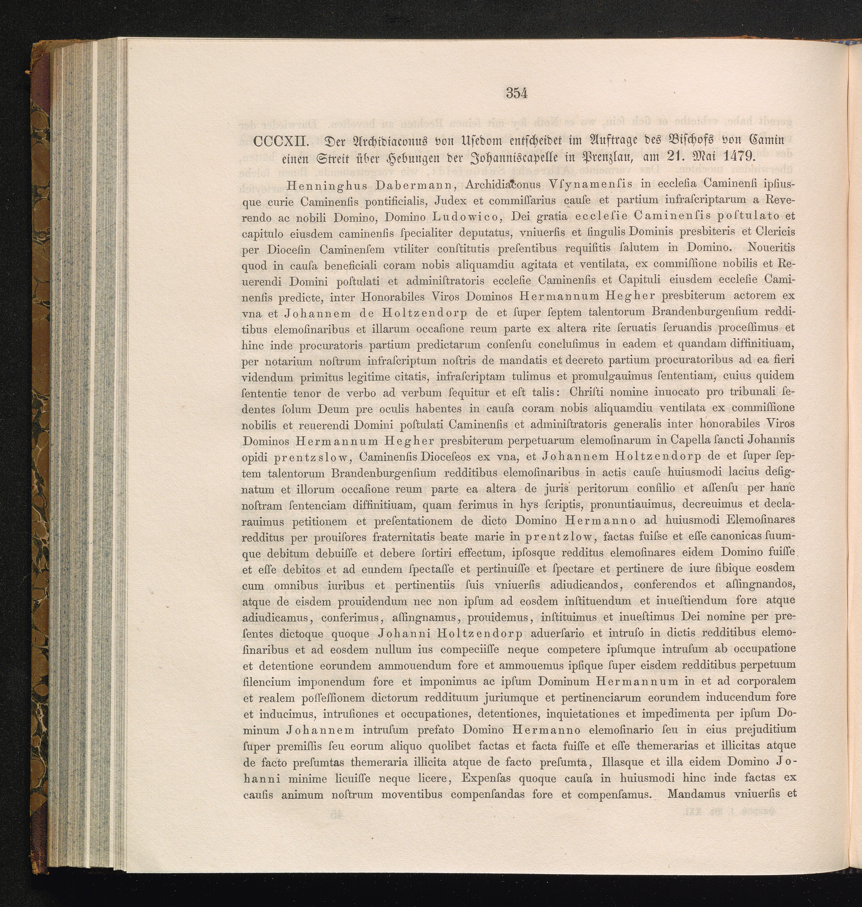 CCCXII. Der Archidiaconus von Usedom entscheidet im Auftrage des Bischofs von Camin[...]