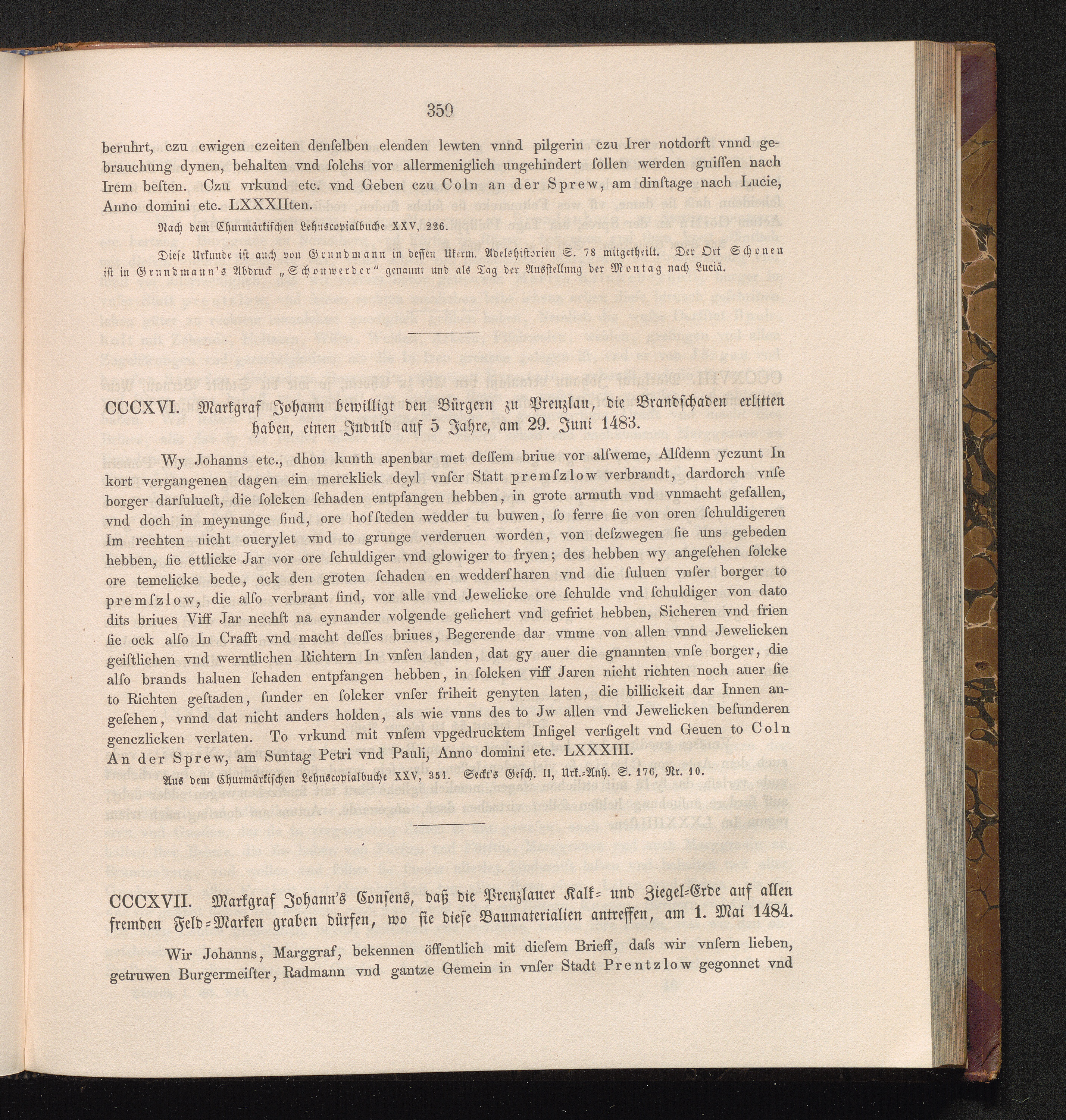 CCCXVII. Markgraf Johann’s Consens, daß die Prenzlauer Kalk- und Ziegel-Erde auf[...]