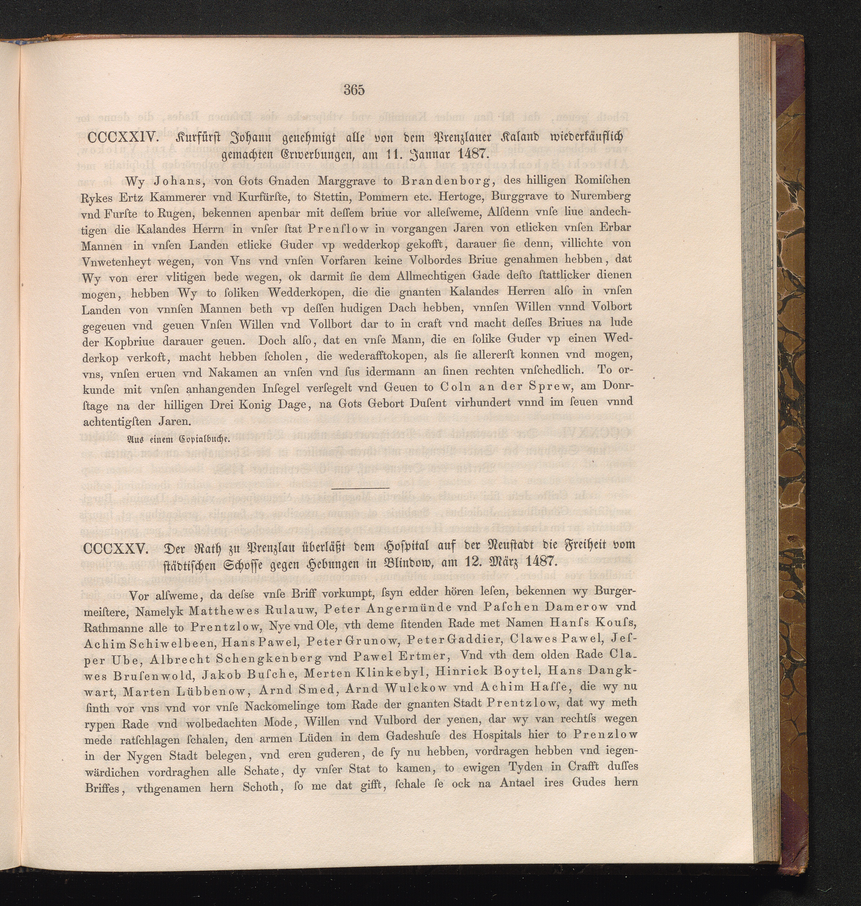 CCCXXV. Der Rath zu Prenzlau überläßt dem Hospital auf der Neustadt die Freiheit[...]