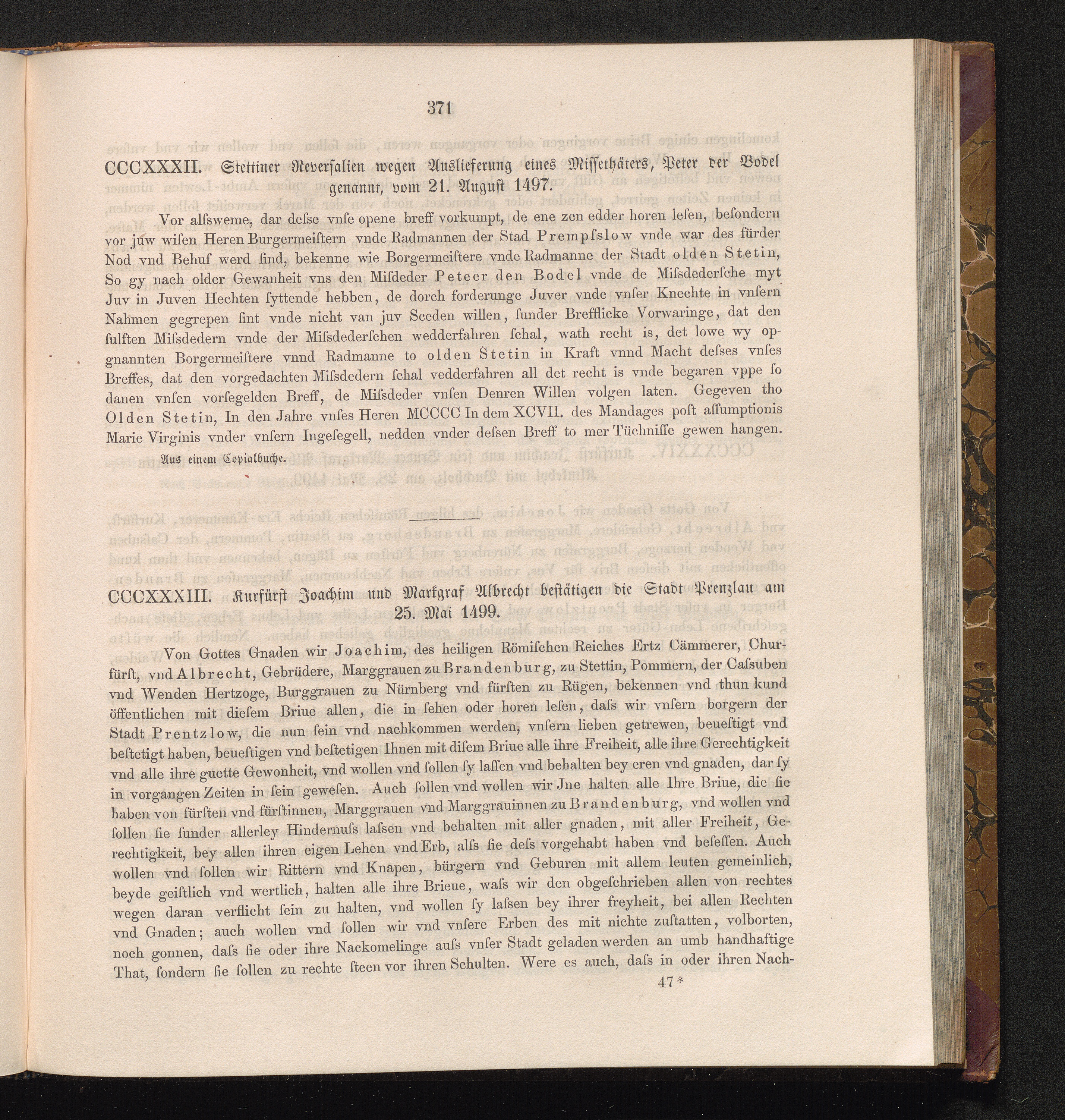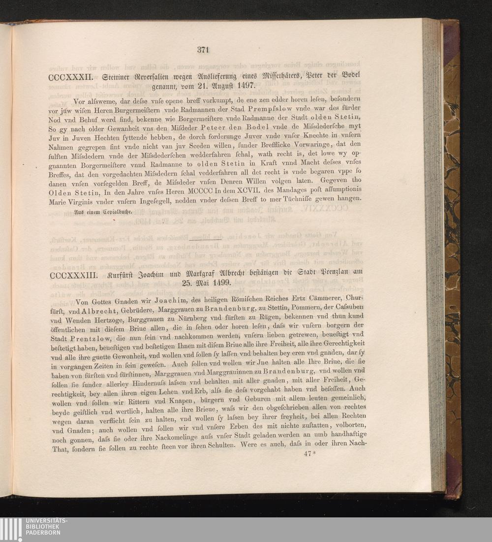 CCCXXXIII. Kurfürst Joachim und Markgraf Albrecht bestätigen die Stadt Prenzlau am[...]
