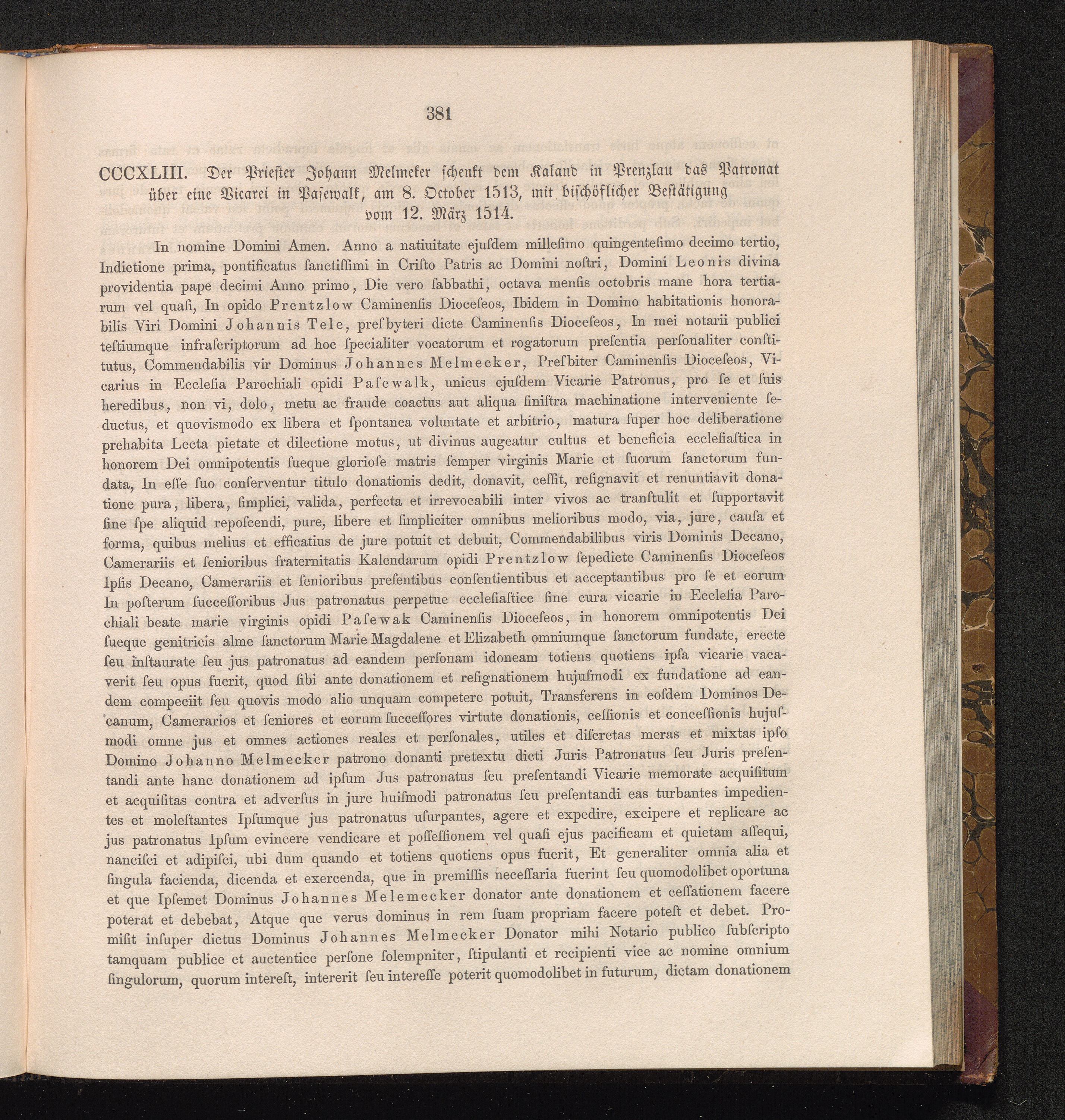 CCCXLIII. Der Priester Johann Melmeker schenkt dem Kaland das Patronat über eine[...]