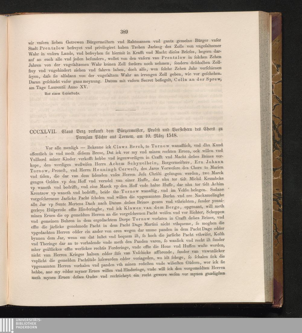 CCCXLVII. Claus Berg verkauft dem Bürgermeister, Probst und Vorstehern des Chors[...]