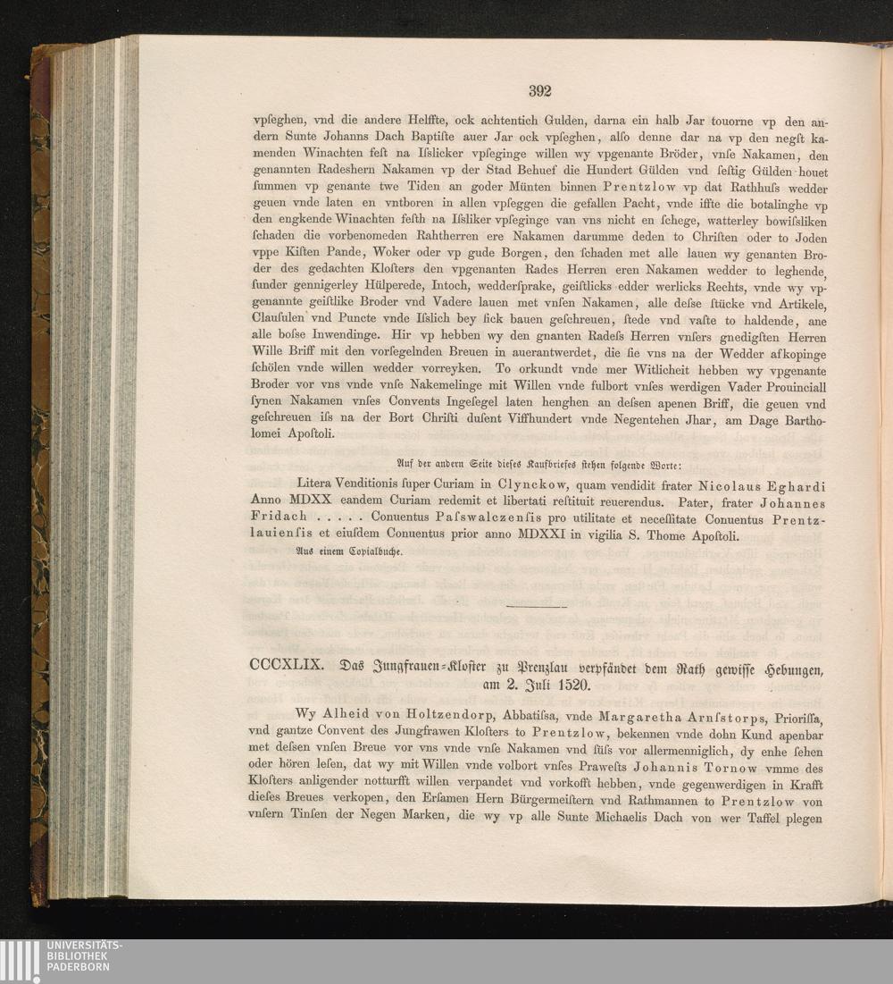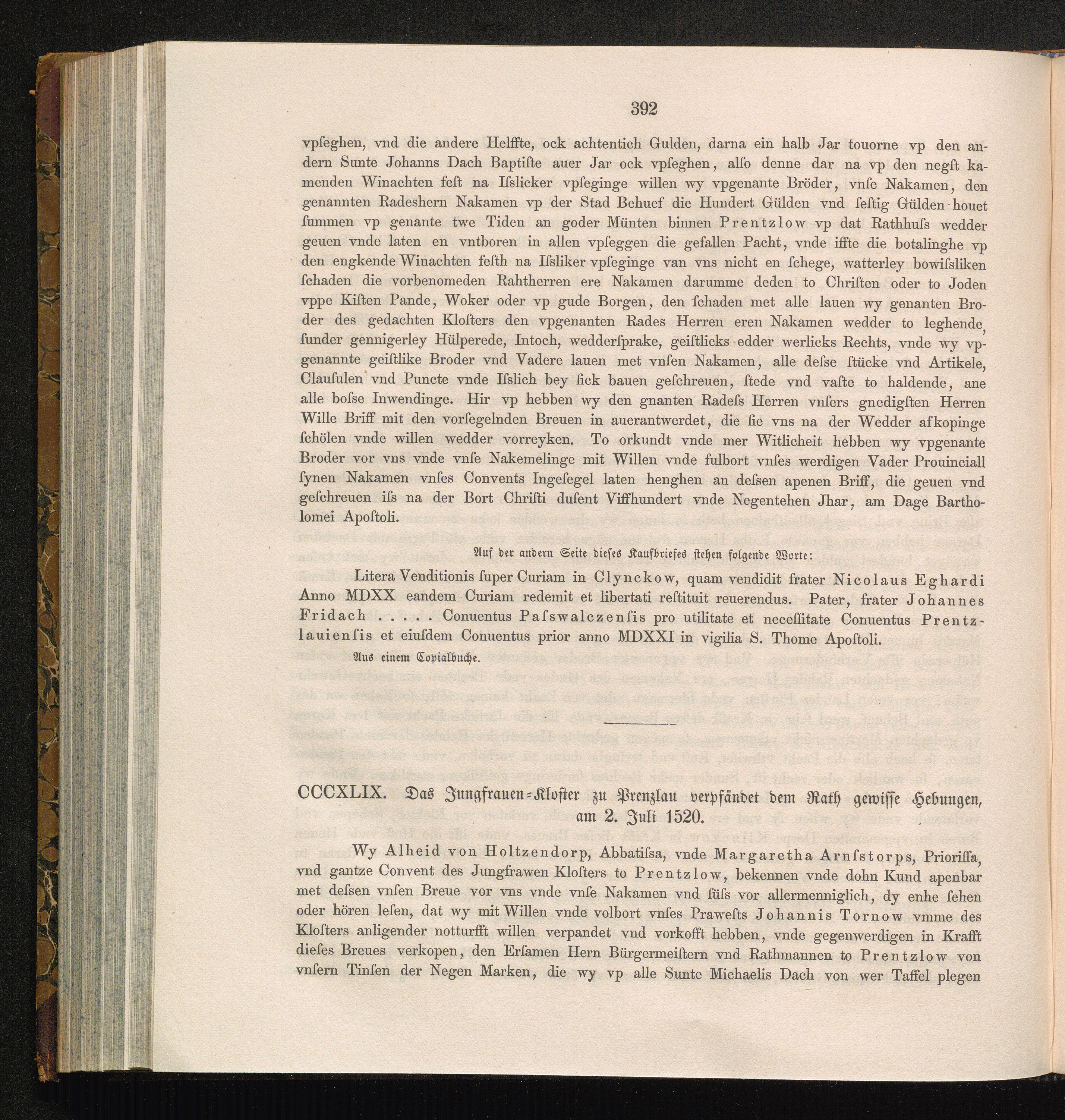CCCXLIX. Das Jungfrauen-Kloster zu Prenzlau verpfändet dem Rath gewisse Hebungen,[...]