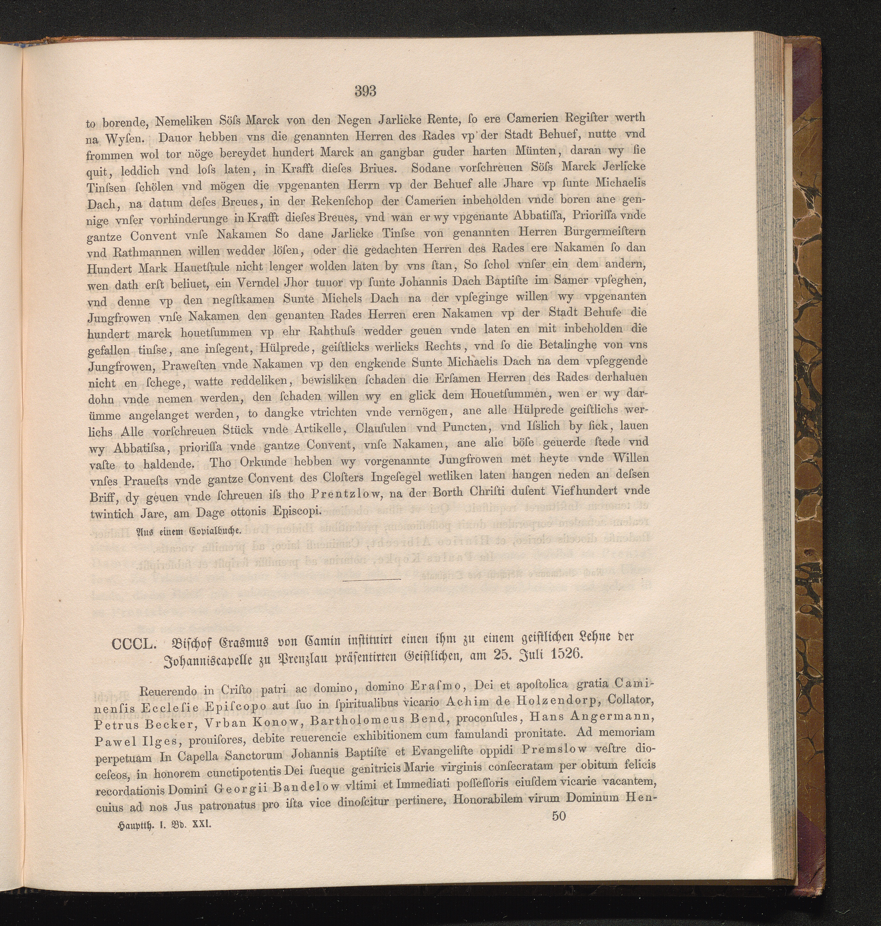 CCCL. Bischof Erasmus von Camin instituirt einen ihm zu einem geistlichen Lehne der[...]