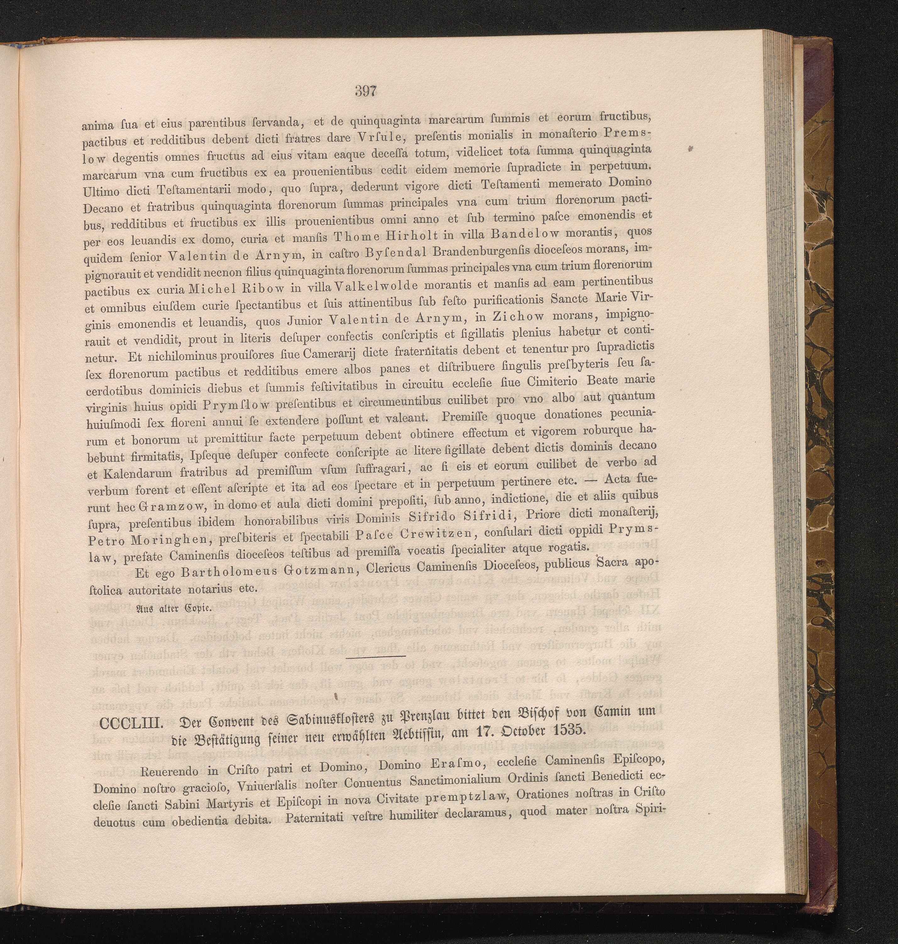 CCCLIII. Der Convent des Sabinusklosters zu Prenzlau bittet den Bischof von Camin[...]