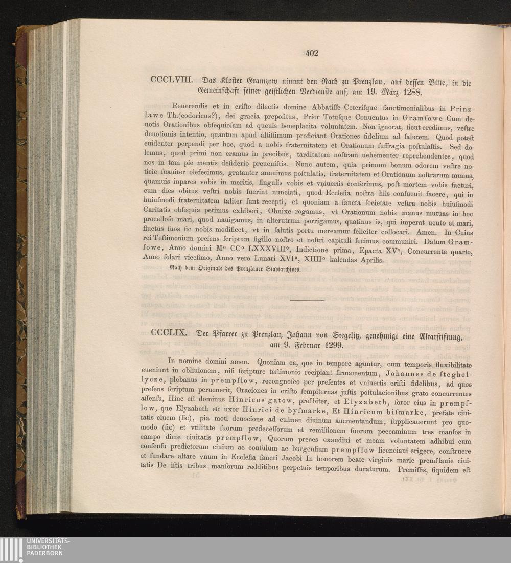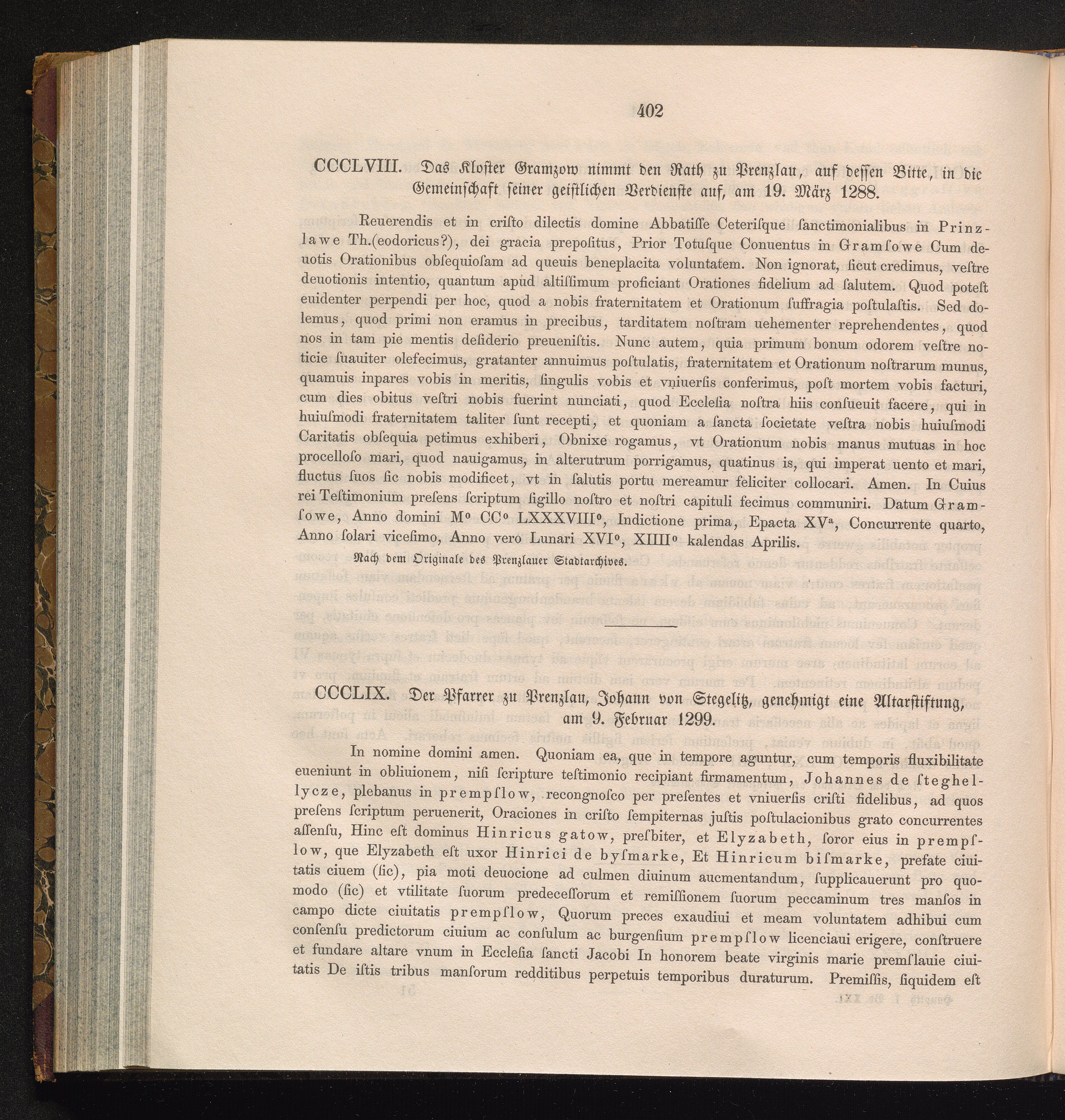 CCCLIX. Der Pfarrer zu Prenzlau, Johann von Stegelitz, genehmigt eine Altarstiftung,[...]