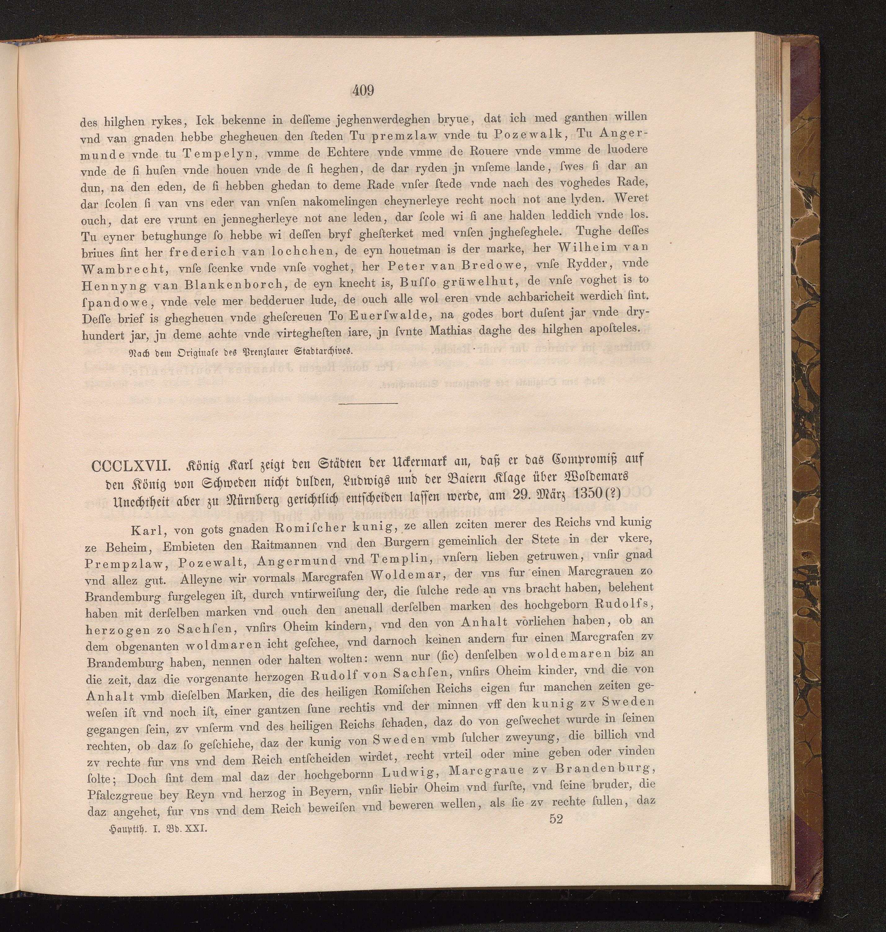 CCCLXVII. König Karl zeigt den Städten der Uckermark an, daß er das Compromiß auf[...]